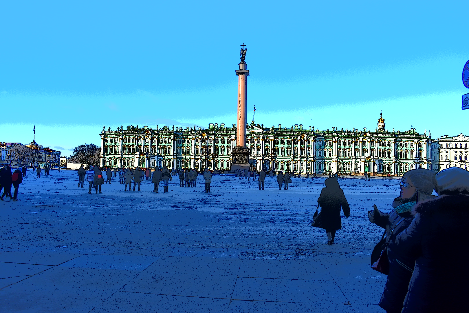 По компоновке- тут стоило людей справа чуть дальше сместить, ближе к центру- сейчас прямо в угол их зажали.