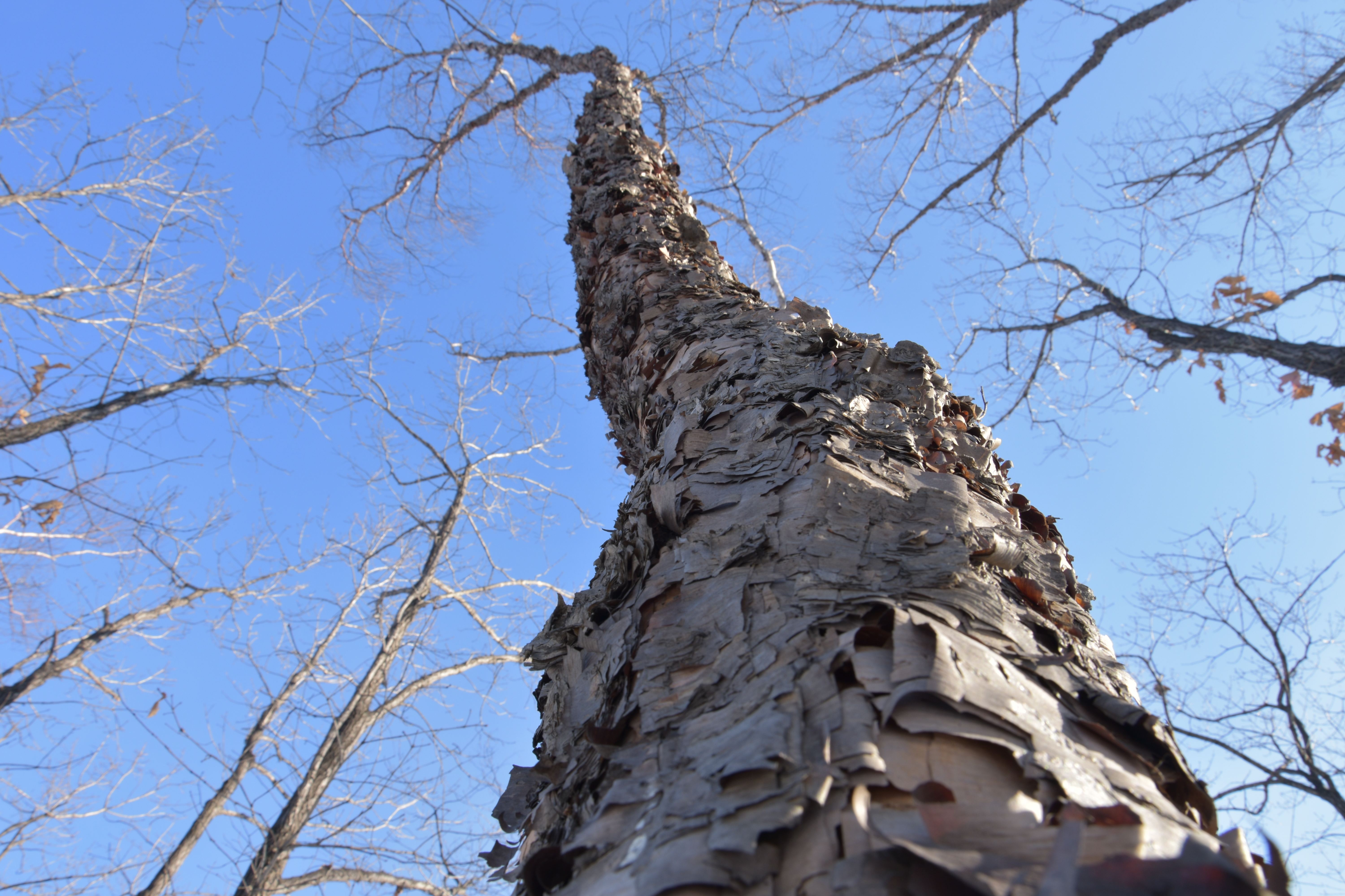 Привлекла меня в этом дереве необычная кора. Как-будто ствол обклеен стикирами. Эту необычность захотелось запечатлеть в снимке.