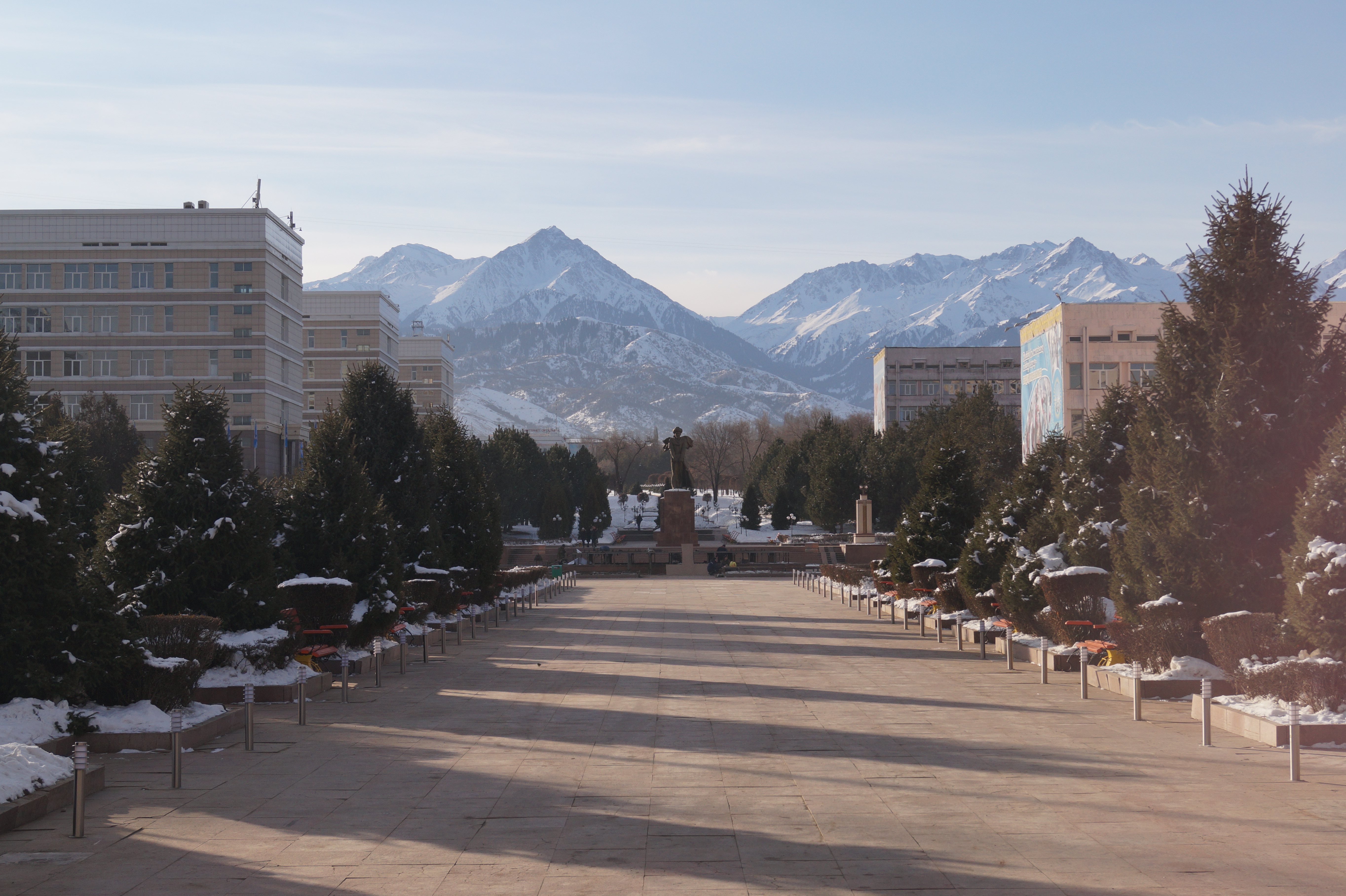 На этом снимке акцент сделан на горы. Чудесный солнечный день. Очень красивое небо, в тон вершинам. Фокусное расстояние 35.