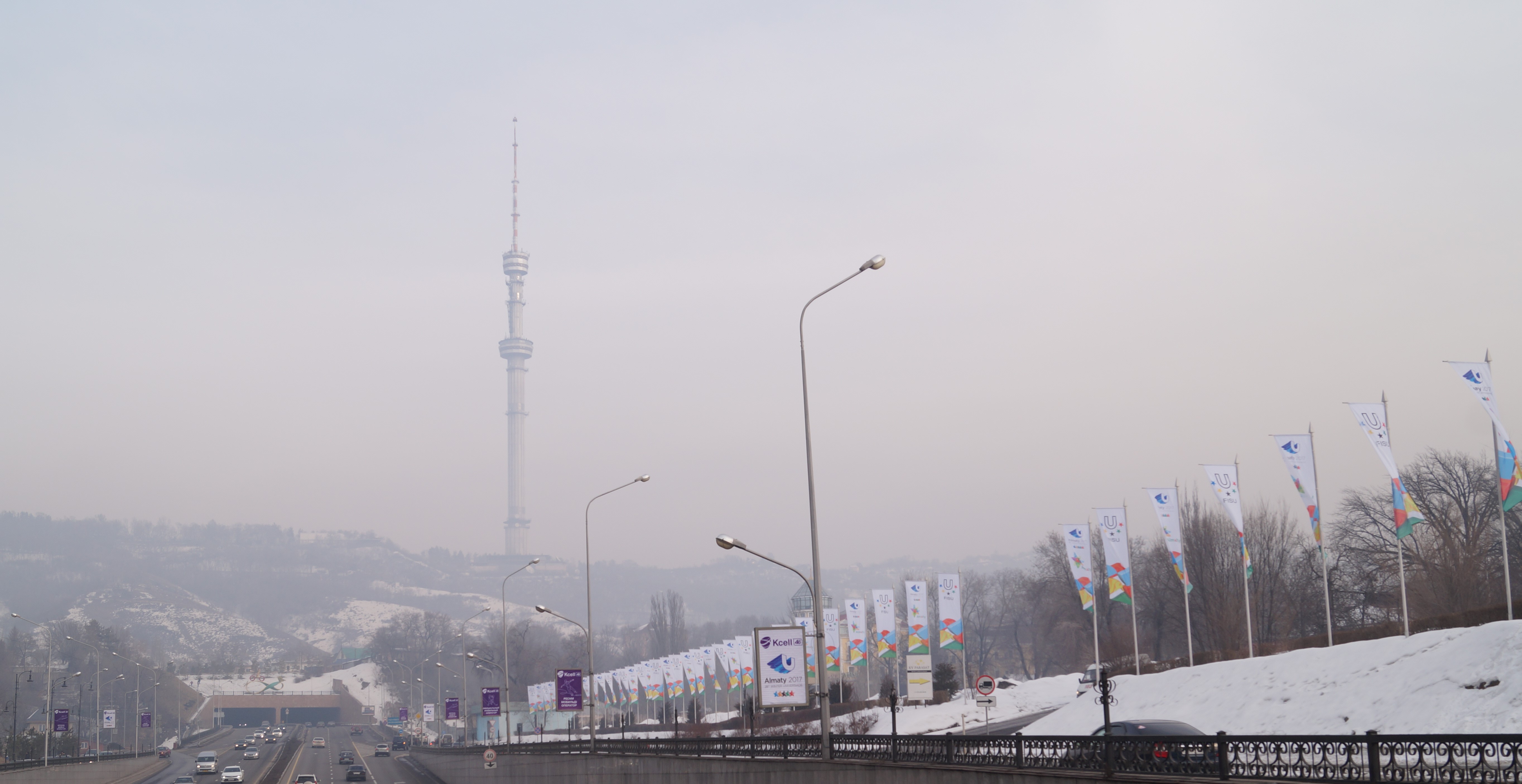 Вертикальные линии ограждения дороги, высокие столбы и флаги также задают отличный ритмический рисунок обогащая общую композицию.
