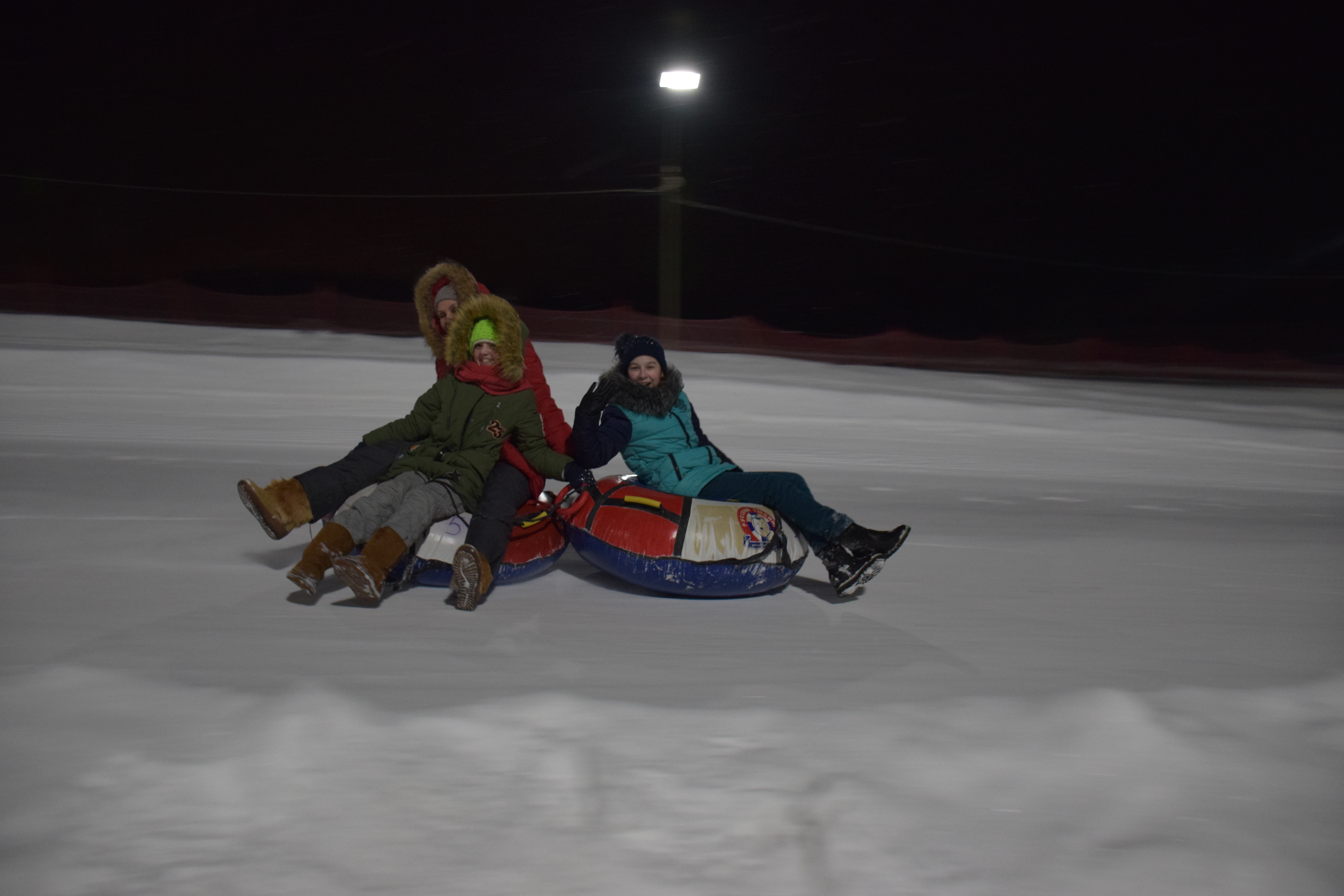 Доброго Вам вечера. Итак сегодня я все-таки собрался с силами, чтобы сделать фото с проводкой! Для этого наша тусовка отправилась на тюбинг! Было 19-00 темно! Освещение достаточно мощное, но и его едва хватало на настройки ISO 1600, выдержка 1/100 работал в режиме S посему за диафрагмой не следил! Я отстоял целый час и фотографировал только своих девушек! Чужих не решался ... не хотелось объяснять для чего и зачем. И вот только в конце часа после, около 10-ти заездов я сумел выловить более или менее приличный кадр! Если честно, я под конец уже отчаиваться начал((( У меня было все: - и смазанные кадры; - и забыл автофокус убрать и фотоаппарат просто не сфотографировал; - и забыл сам сфокусировать ((( Итак Вот моя работа на Ваш суд! Заранее признателен.