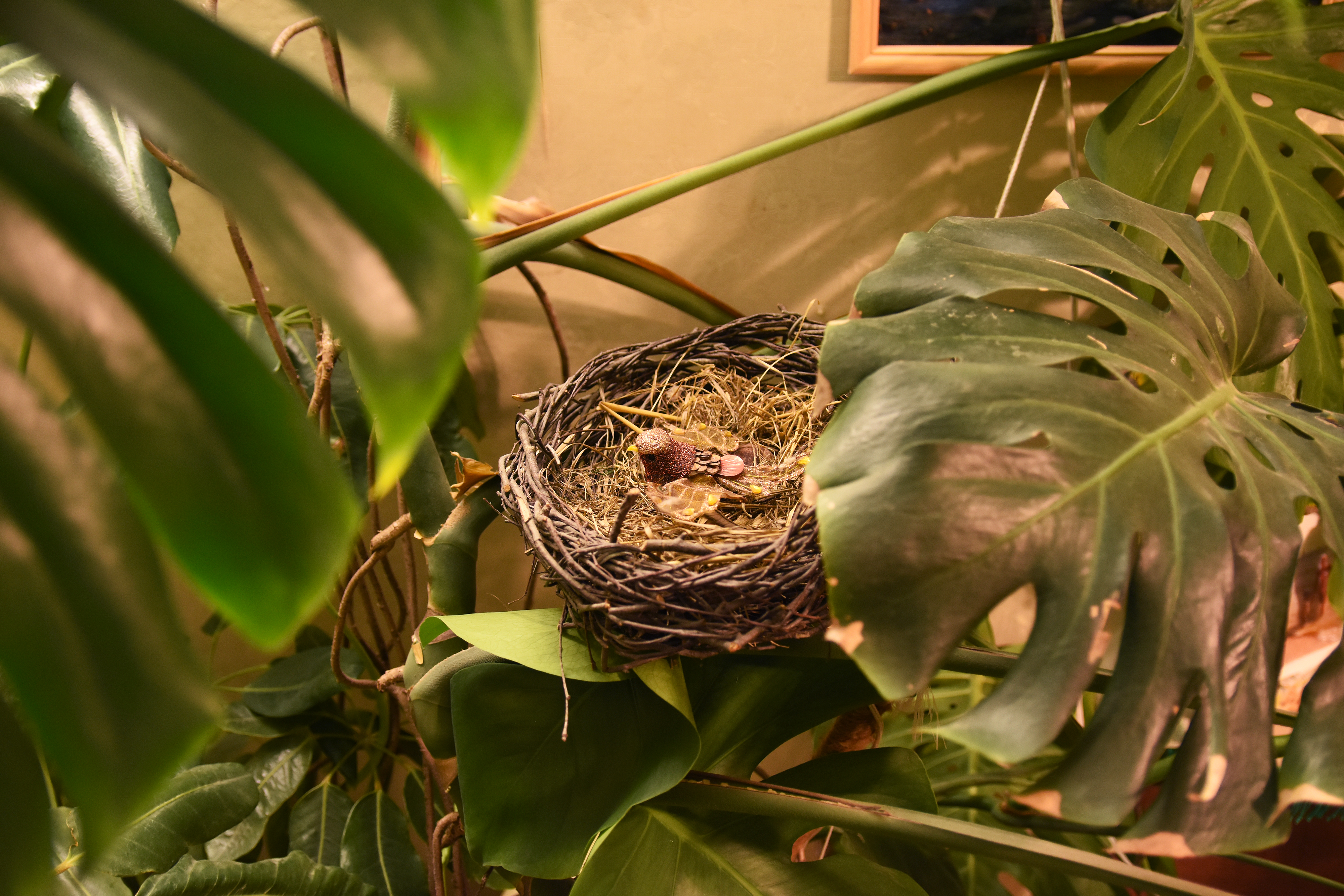 Снимала без вспышки при лампе дневного света. Хотелось передать объем, фокус на птичке. f/2,8, выдержка 1/30, ISO пришлось увеличить до 1000, баланс белого лампа дневного света