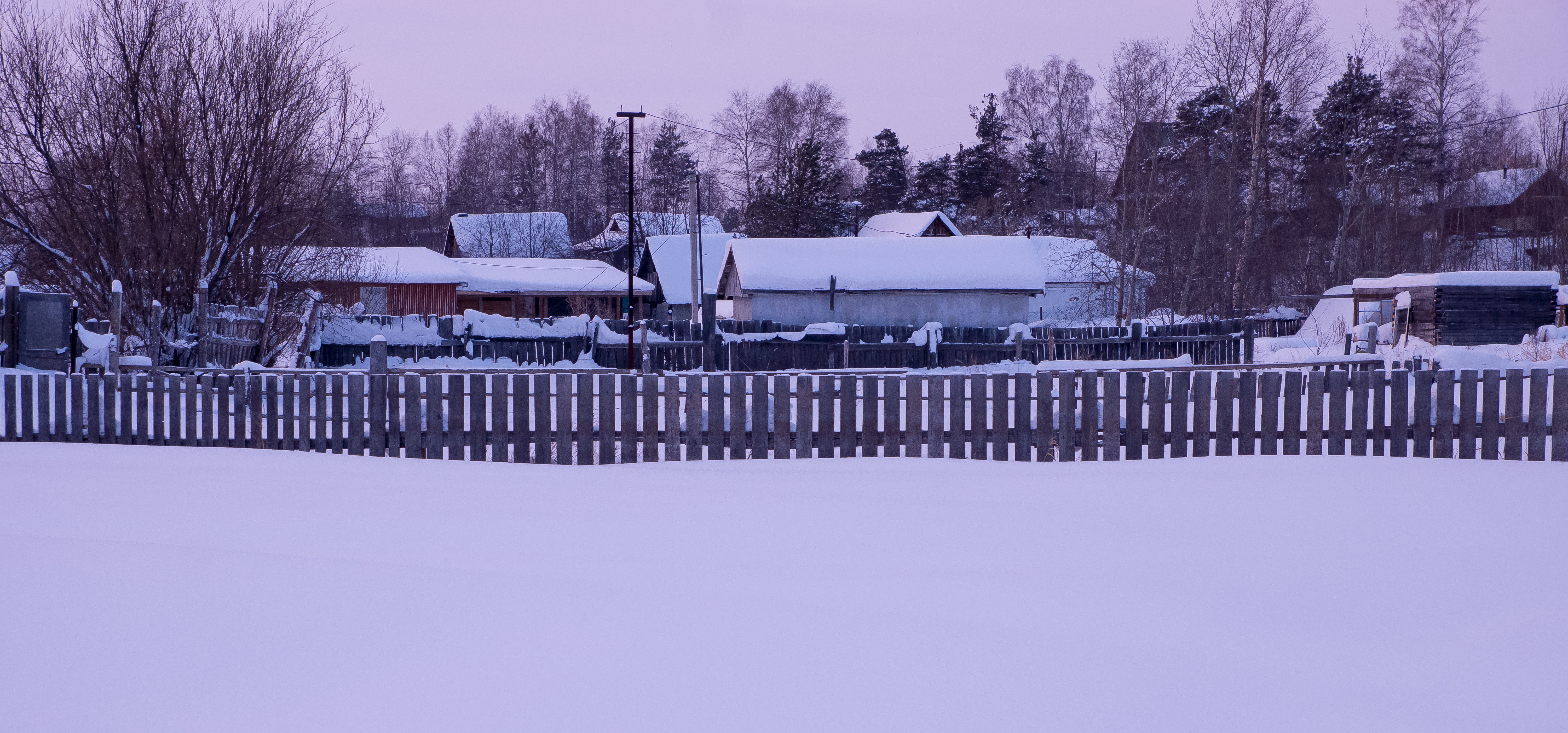 Да, деревенский забор зимой - это сюжет композиционно привлекательный. Согласен, что за счёт этого в кадре появился чёткий ритм. И благодаря панорамному формату кадра этот ритм дополнительно усилен.