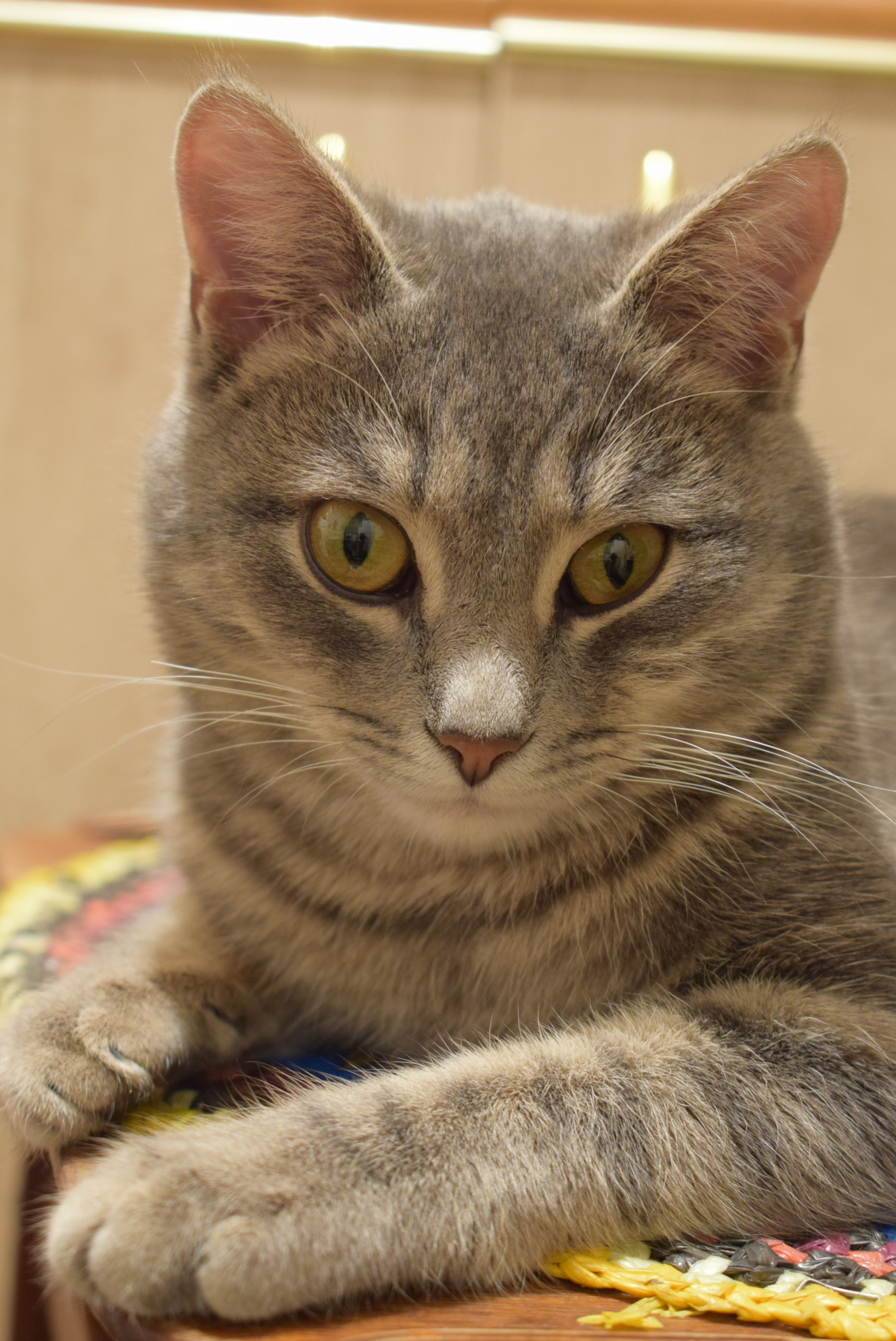 вы выбрали достаточно удачную точку съемки - с уровня глаз пушистой модели. Акцент в кадре сделали именно на глаза. Благодаря открытой диафрагме они выделены резкостью, он размыт и не отвлекает.