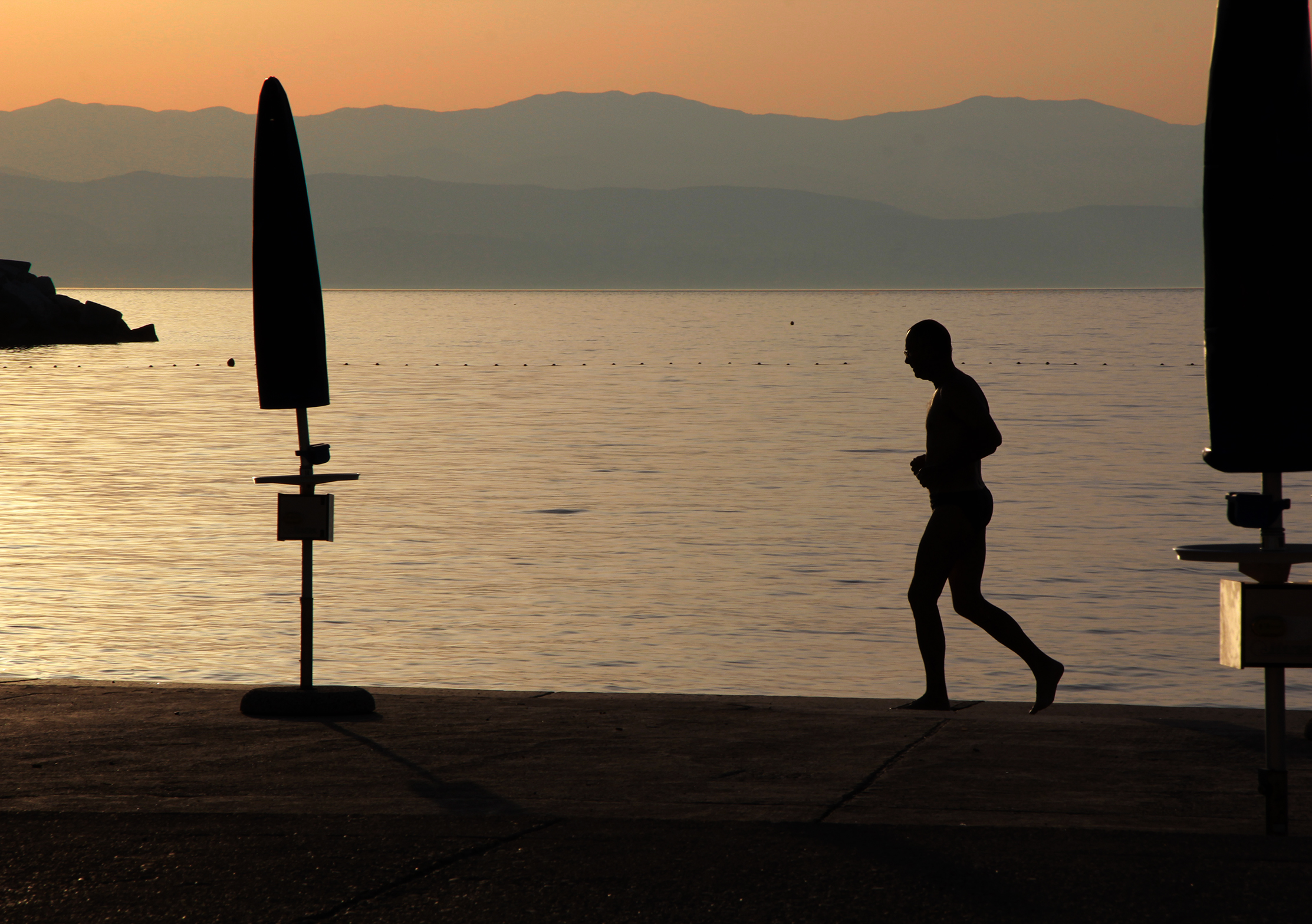 Хороший сюжет для силуэтной съемки! Хорошо поймали бегуна на пляже.