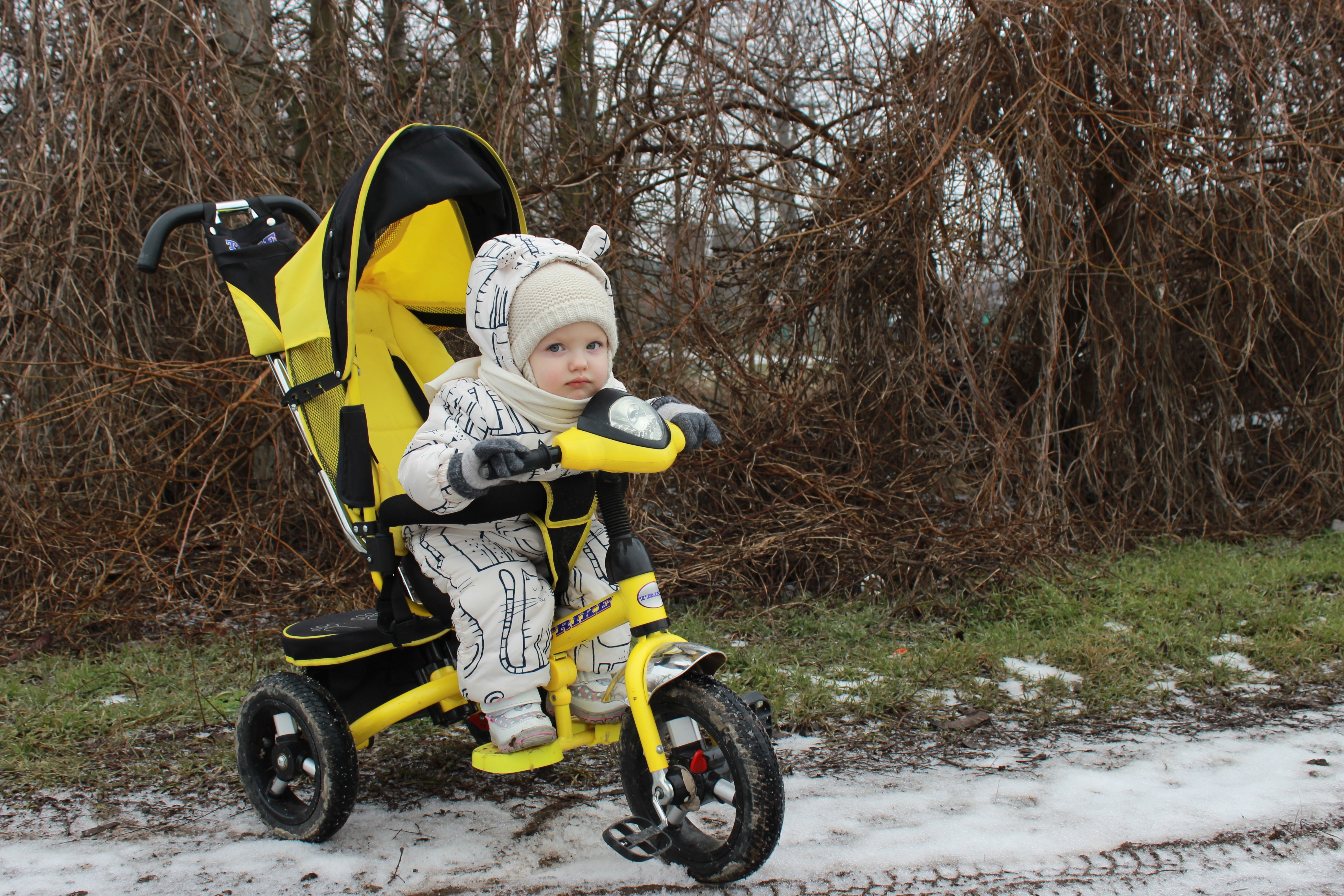 Скомпонован кадр по всем правилам. Лицо нашего героя как раз на пересечении третей, да и в сторону движения детского транспортного средства оставлено достаточно места :) Отлично!