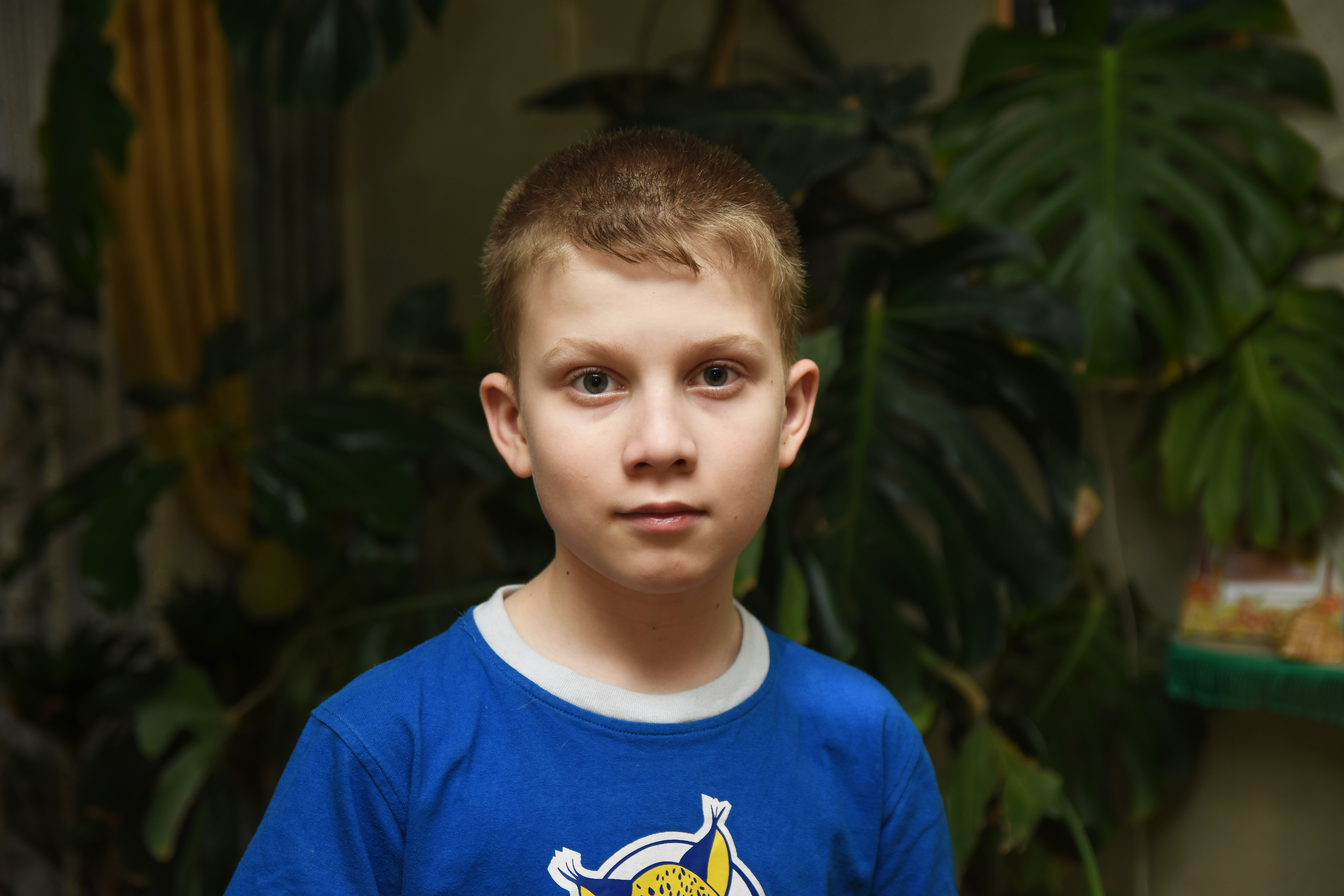 Плюс малая глубина резкости удачно отделяет ребёнка от тёмного однородного заднего плана.