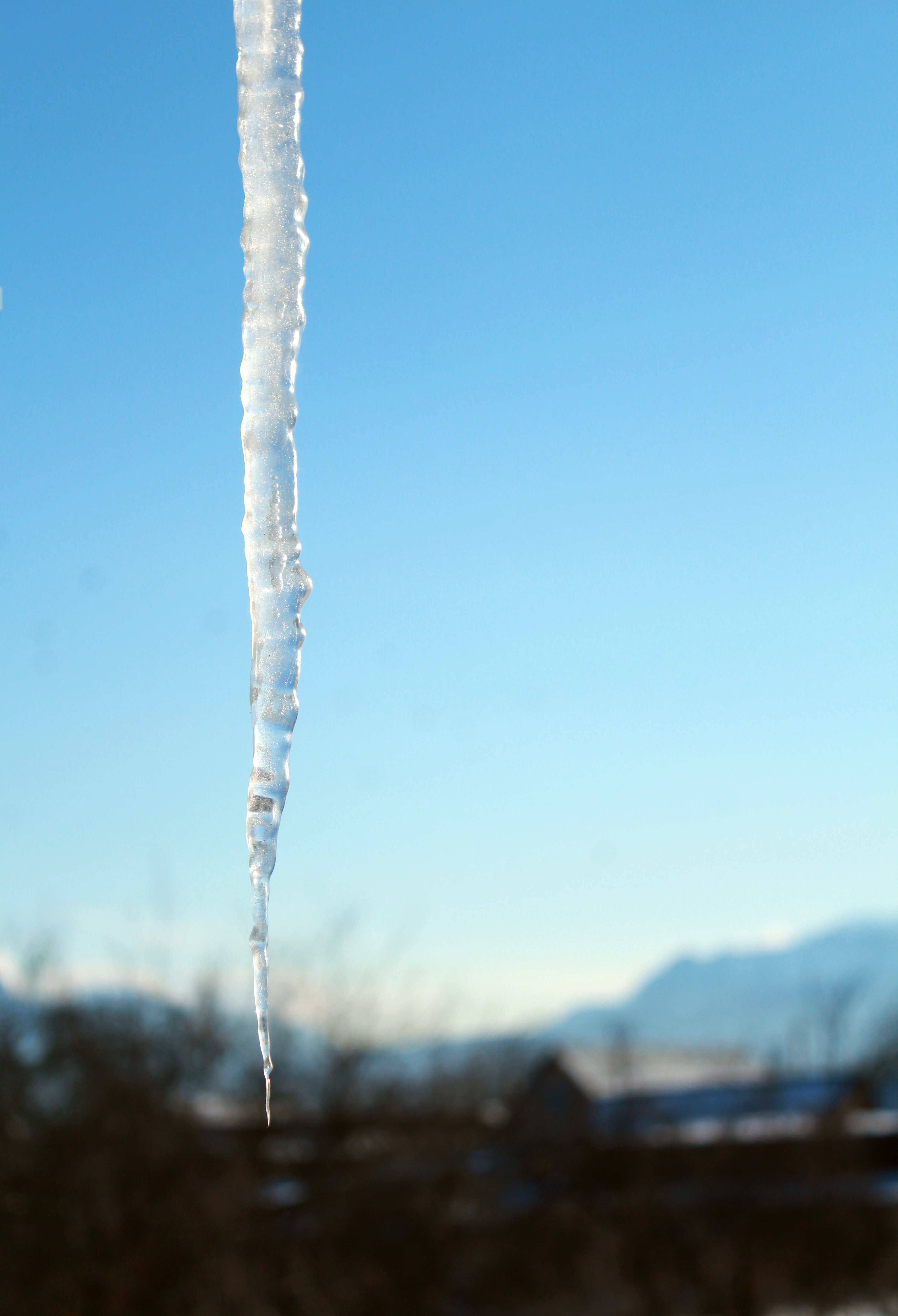Вот такая хрустальная сосулька на фоне синего неба)) Объект расположен по правилу третей. Хотела показать структуру льда.