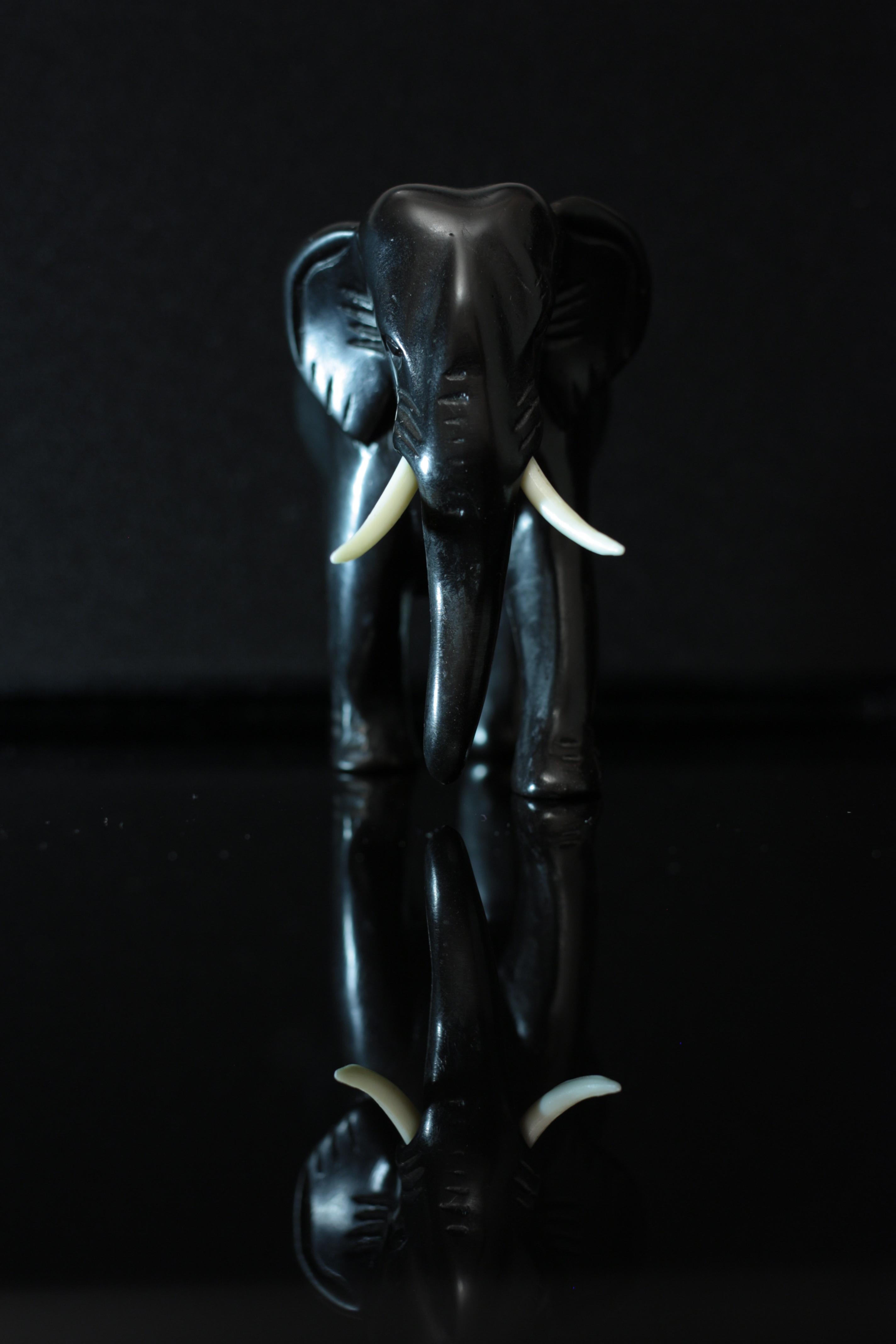 Отлично смотрится черный слоник на черном фоне, при боковом освещении его форма выражена за счет светотени и бликов. Экспозиция настроена точно, по светлым фрагментам - так вы получили глубокие тени.