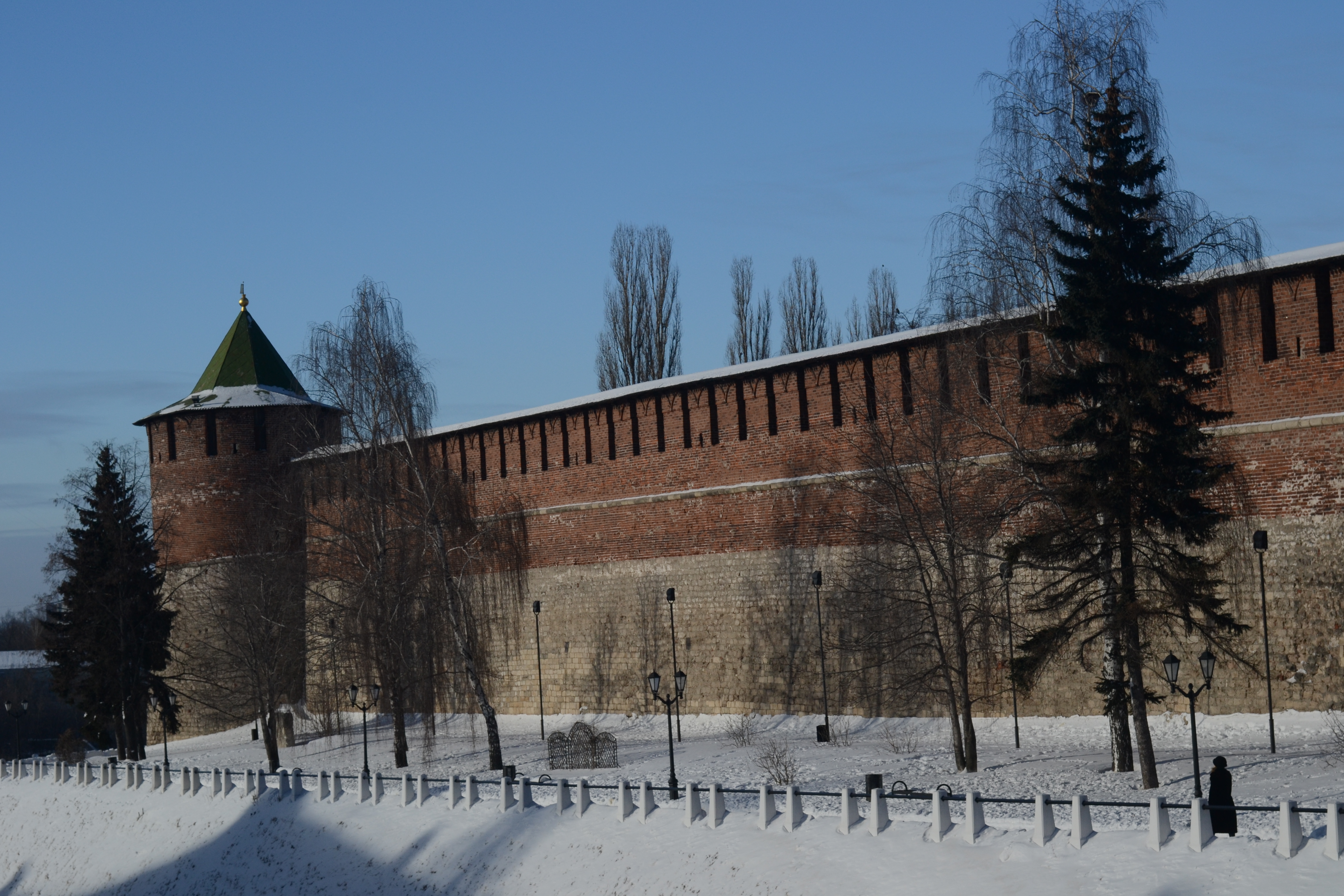 Кадр замечательный получился, вы отлично выбрали сюжет - живописно смотрится зимний парк и архитектура древней крепости на дальнем плане. Возможно, точку съемки стоило выбрать поближе к стене и сделать кадр вдоль дорожки, чтобы более выразительно передать в кадре уходящую перспективу, многоплановость - снимок будет более объемно смотреться.