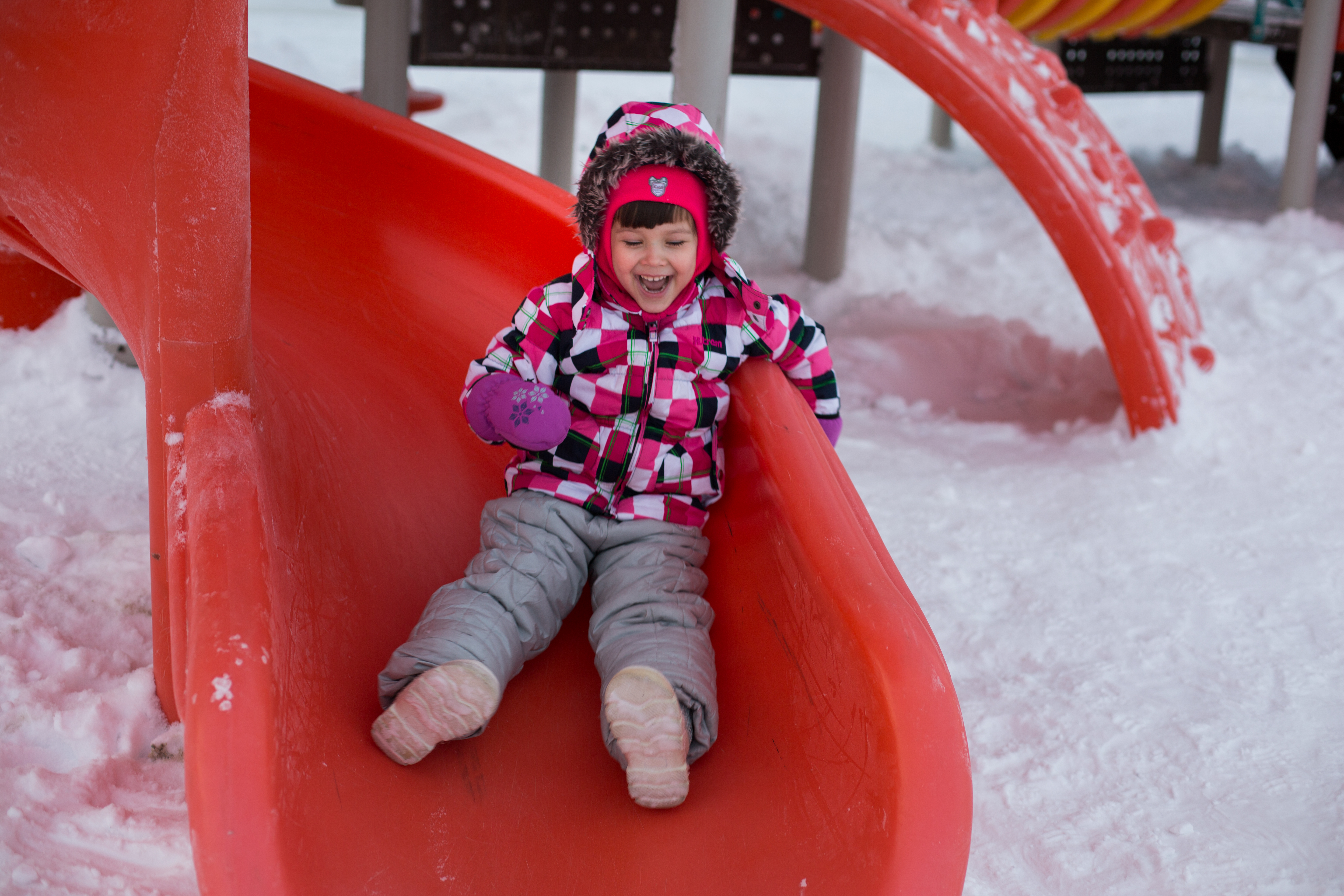 Светлое время суток, возможно опять слишком открыта диафрагма, а ещё затрудняюсь с кадрированием здесь, хочется, чтоб было понятно, что ребёнок мчится с горки.