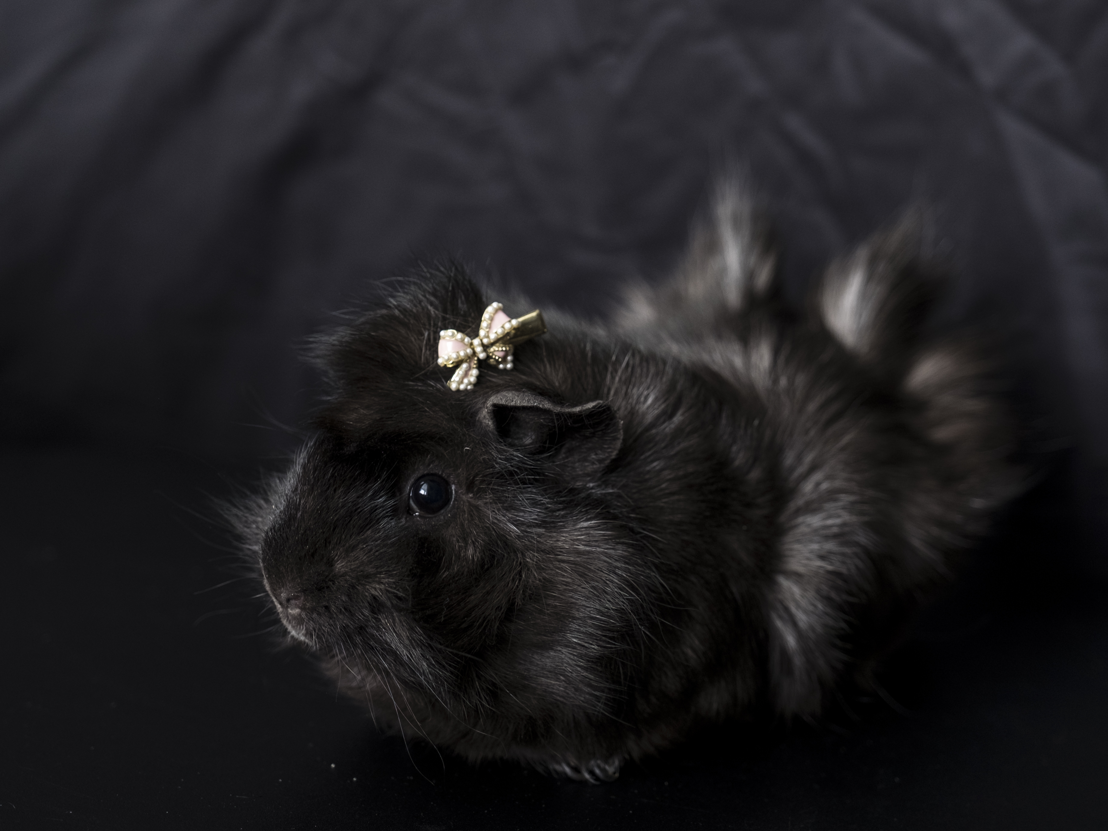 Камеру точно сфокусировали на мордочку свинки. Диафрагма открыта и глубина резкости получилась маленькая, что придает портрету объем.