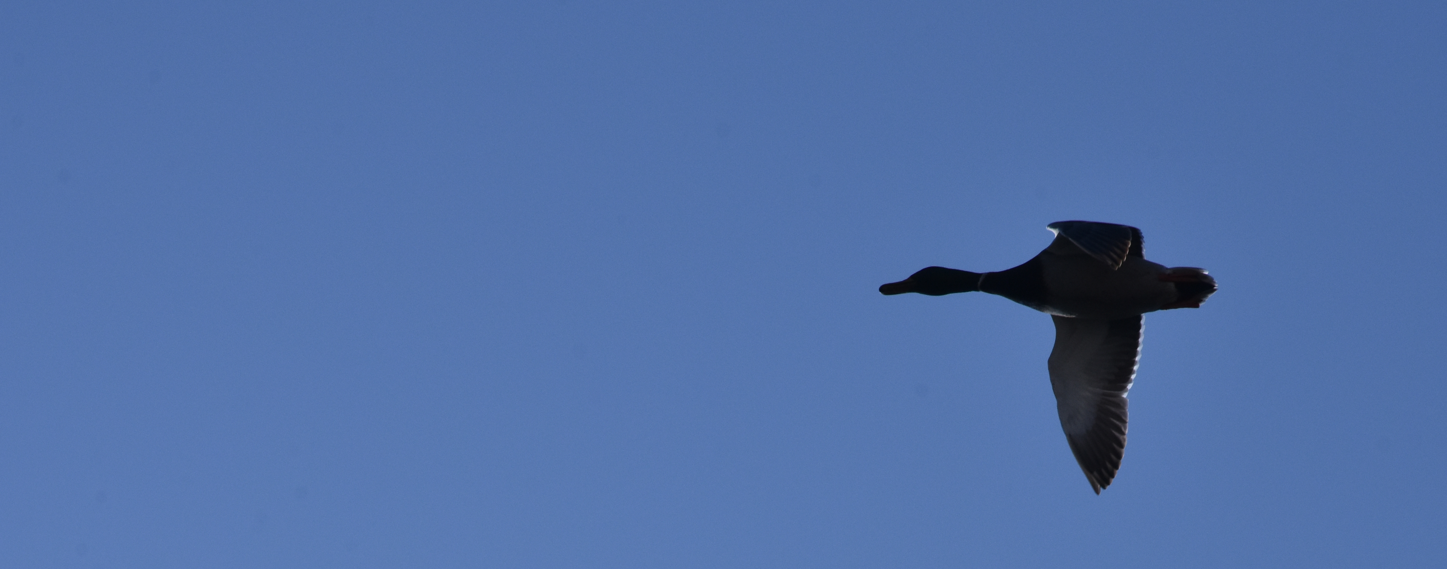 С уточкой дела обстоят намного лучше! Здорвоо смотрится силуэт летящей птицы на фоне яркого неба. Скомпонован удачно снимок, слева оставили пространство, есть куда двигаться!