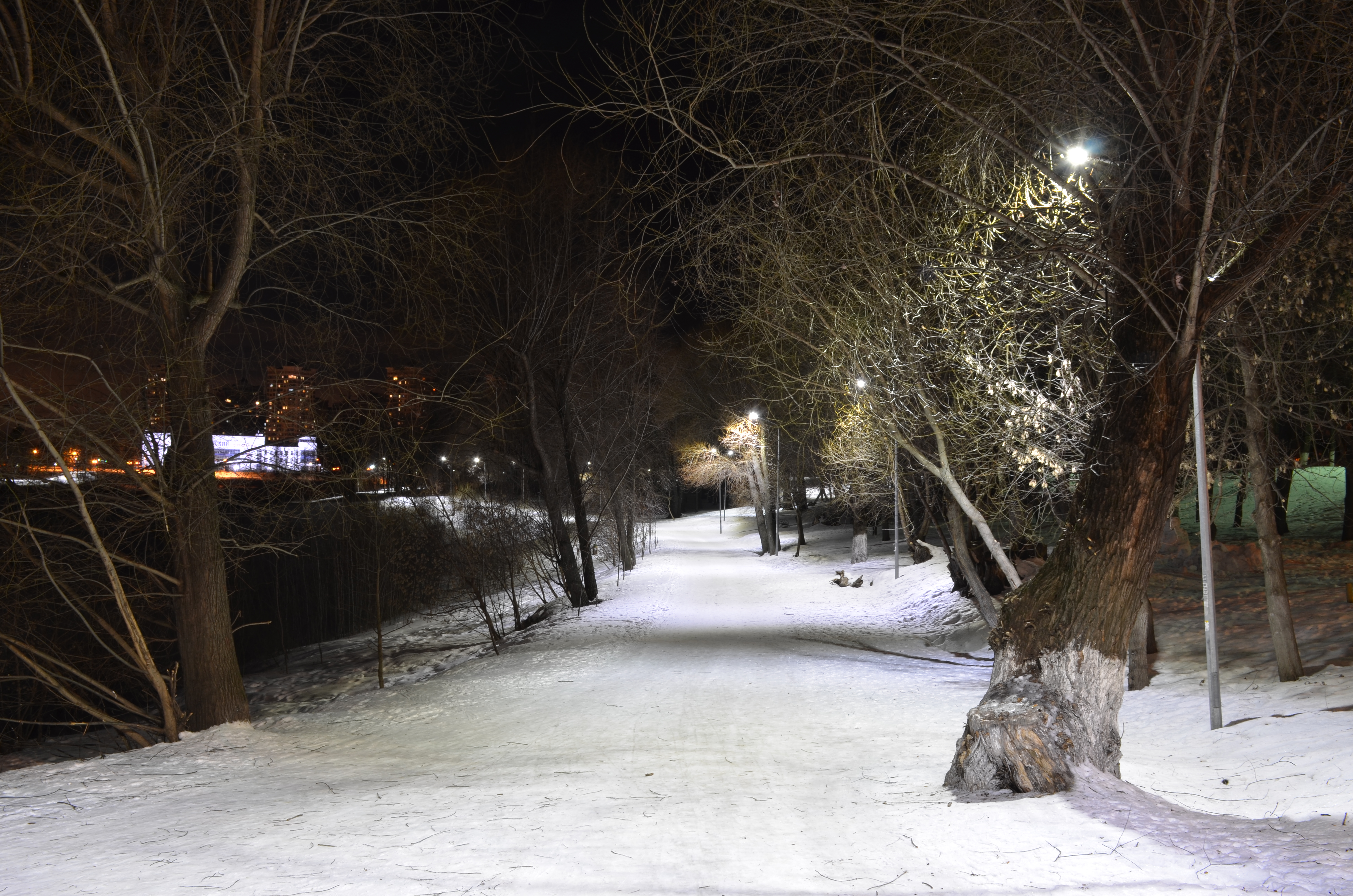 Фотография в жанре ночного городского пейзажа. Вид понятный, вполне реалистичный и сложные условия освещения не помешали Вам произвести резкий кадр с длинной выдержкой в 15 секунд.