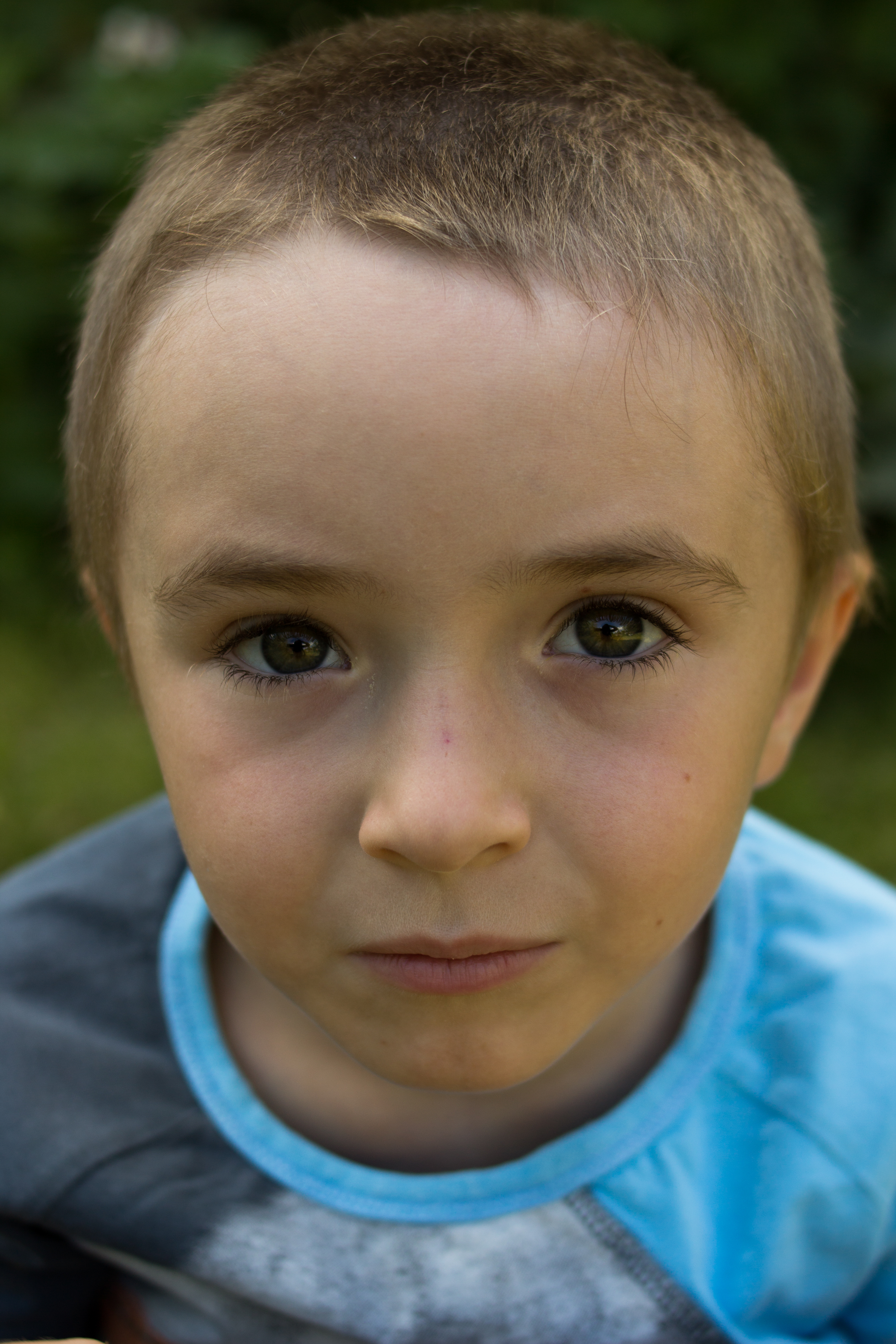 Камеру удалось точно сфокусировать на глазки мальчика. Блики делают взгляд более выразительным.