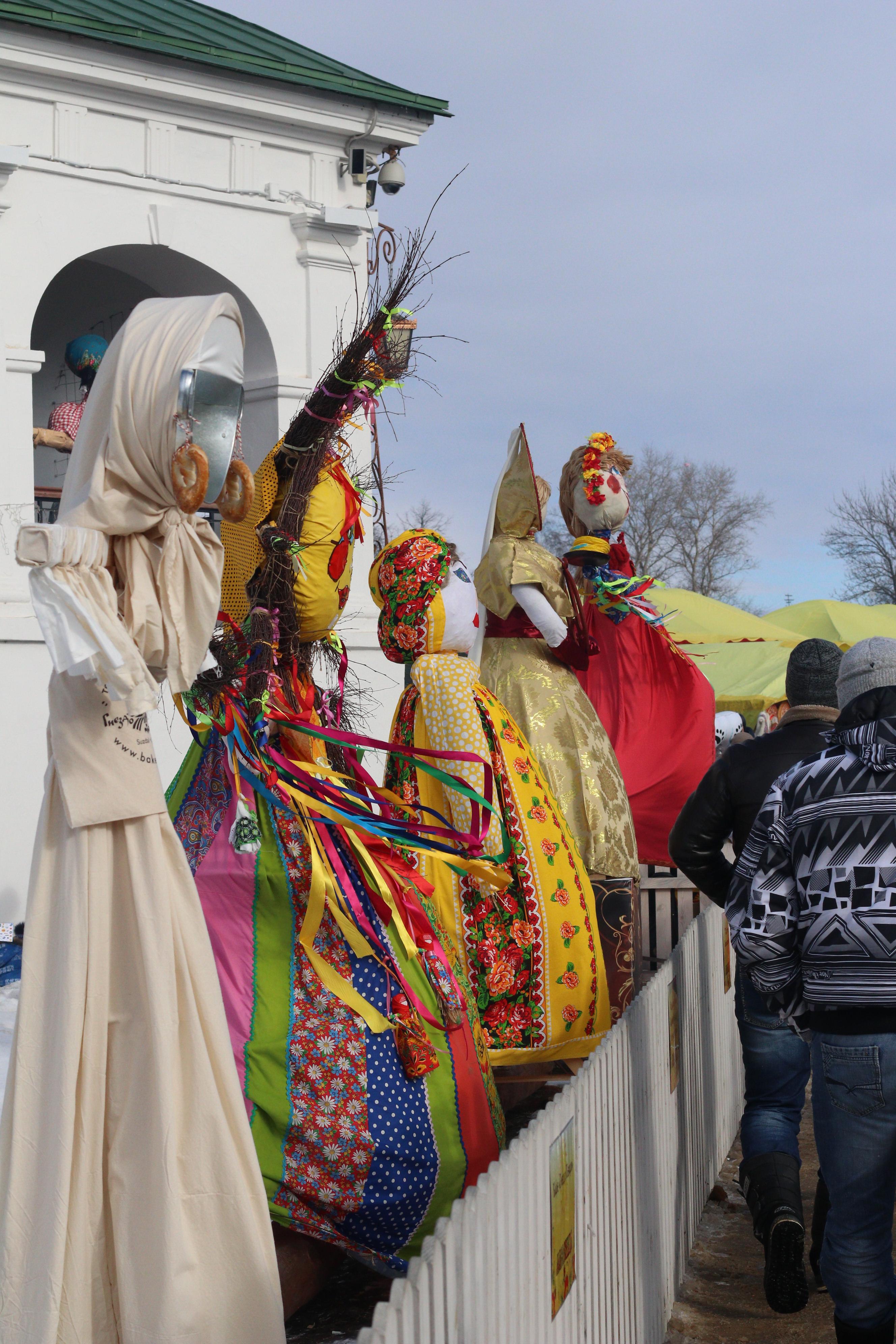 На данном фото восходящая диагональ, которую образуют фигуры маслениц и усиливает забор. От людей я избавиться не могла, хотя и старалась.