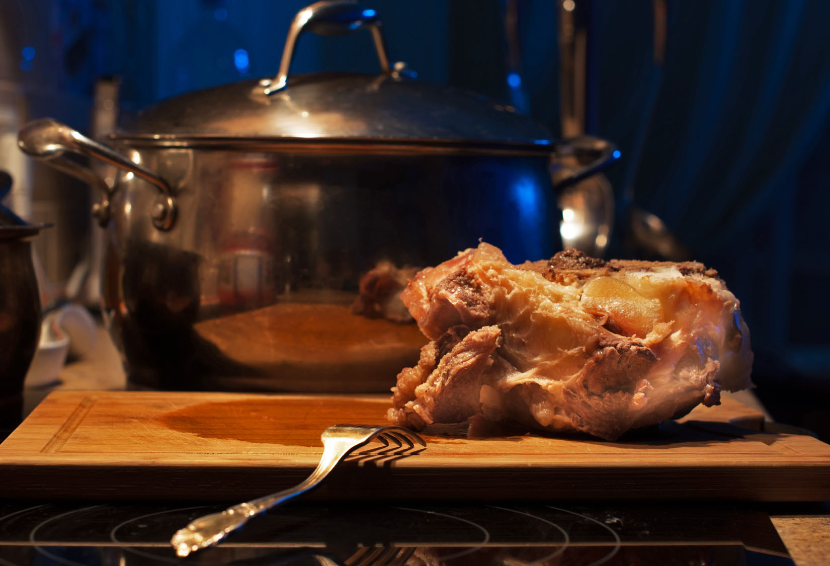 Высокий контраст делает мясо более объемным, но вот детали в тенях стоило чуть больше осветлить, например, смещая точку серого влево в инструменте Уровни.