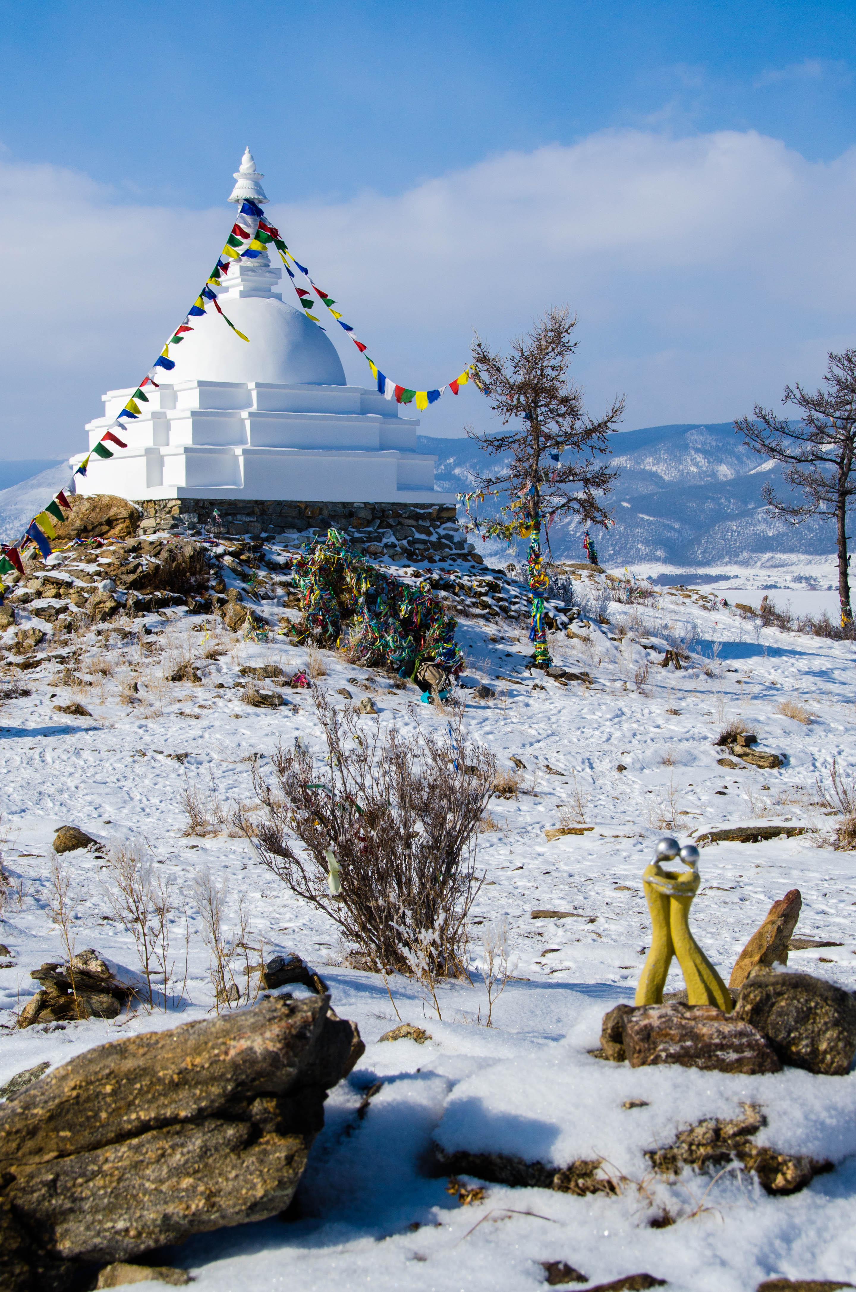 На этом кадре хотелось расположить по правилу третей и Ступу и фигурки на ближнем плане. Снято на острове Огой на Байкале. С уважением, Елена