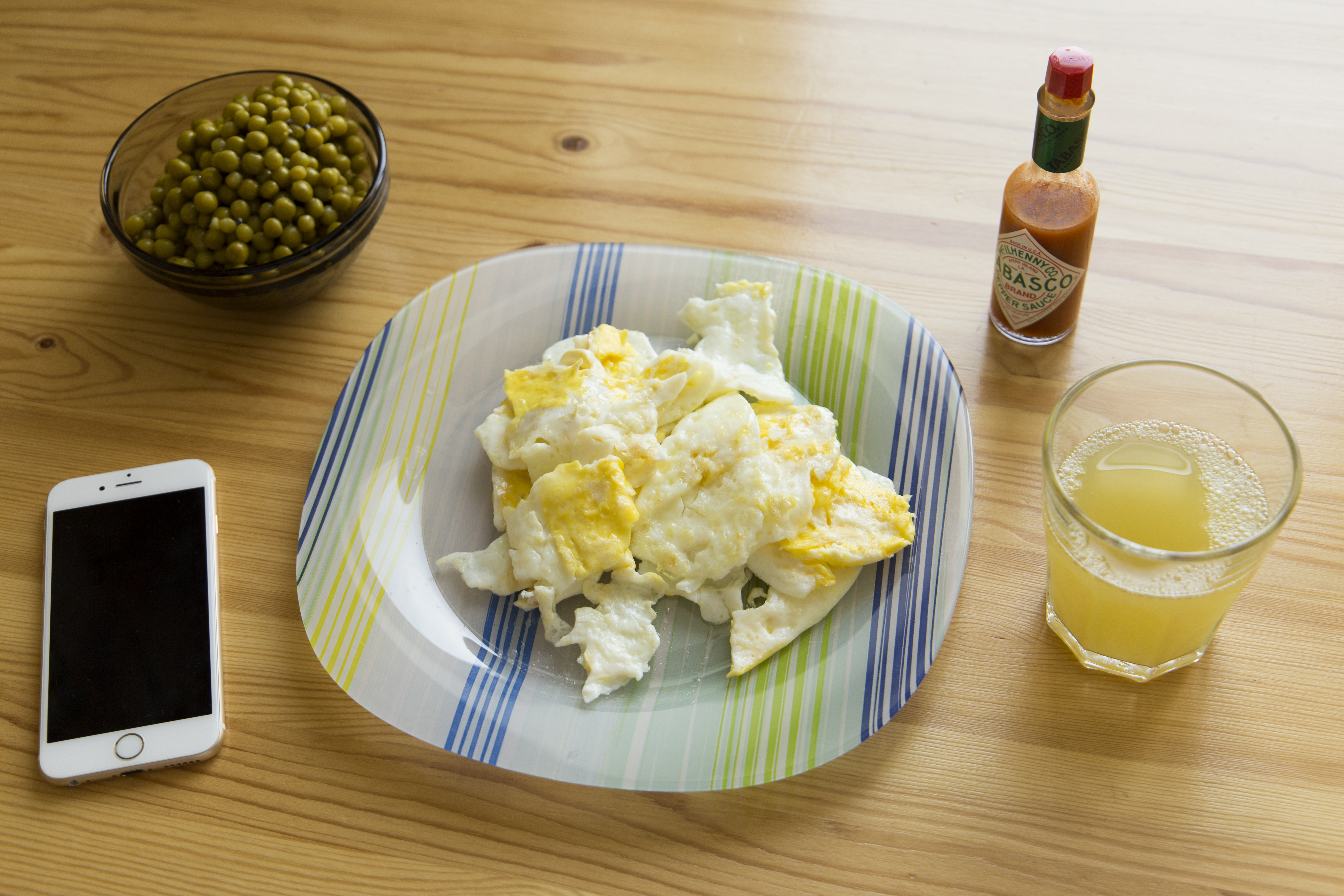 Завтрак. Освещение от окна. Надо было включить какие-нибудь свежие новости на телефоне.