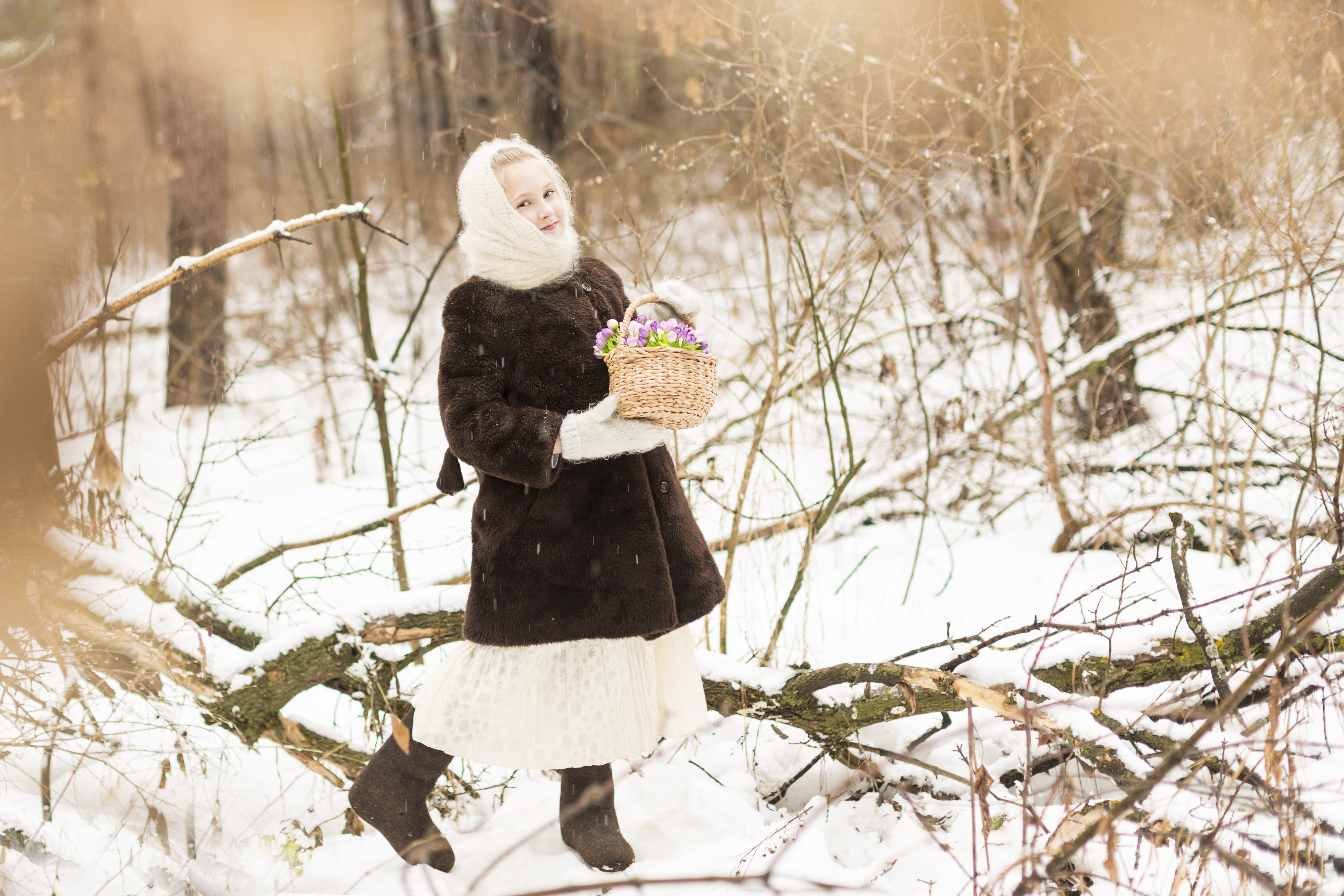 Сюжет сказки вы здорово реализовали - очень узнаваемо смотрится образ и корзинка с подснежниками. Позирование открытое и очень милое! Удалось передать атмосферу зимнего леса.