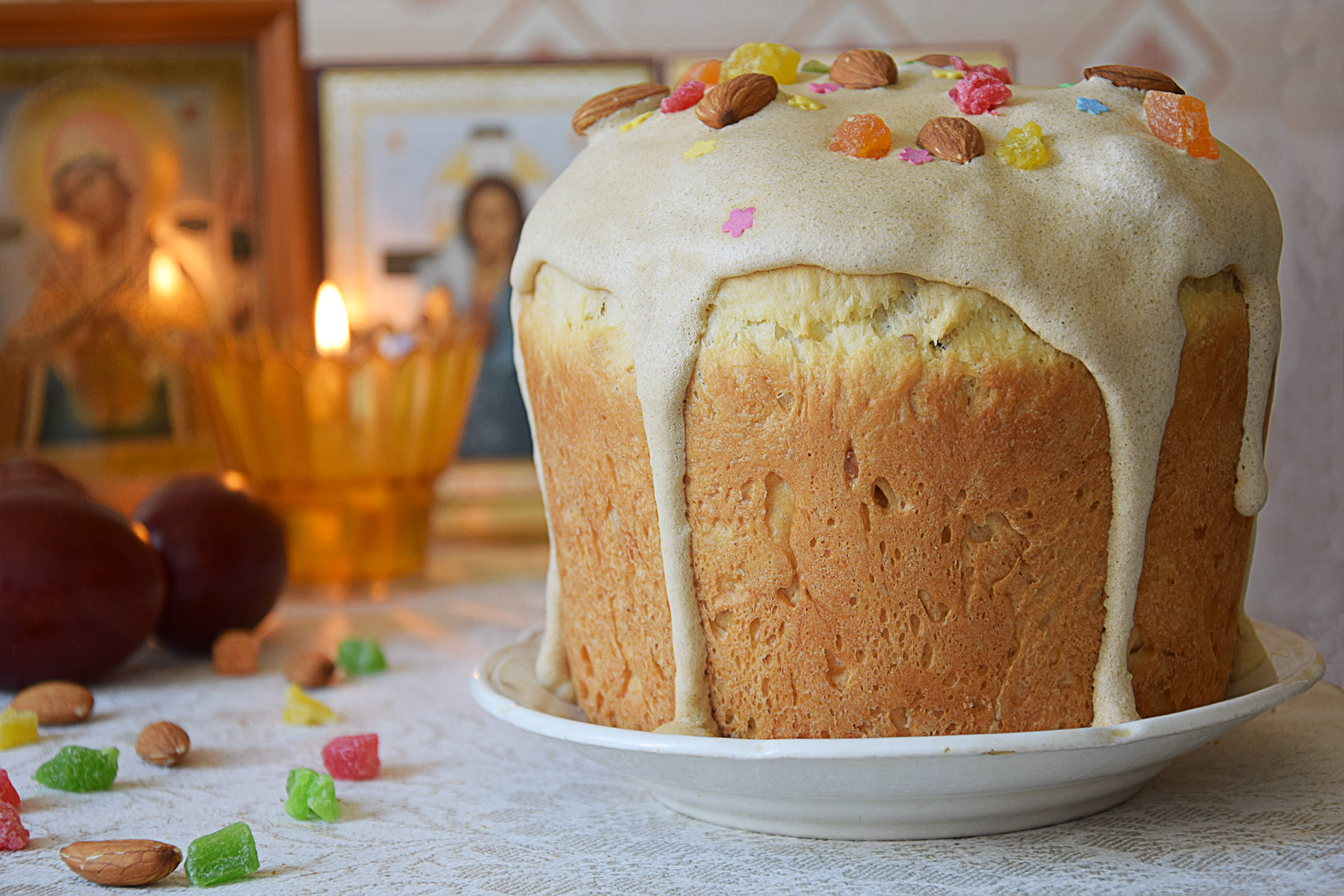 Хороший снимок - яркий, насыщенный, резкий! Качество высокое, точная цветопередача. Все настройки выбрали удачно и камеру надежно зафиксировали при съемке, точно сфокусировались на главном объекте. Точка съемки "от стола" тоже хорошо подходит к этой композиции, получилось передать пропорции без искажений и подчеркнуть высоту кулича.
