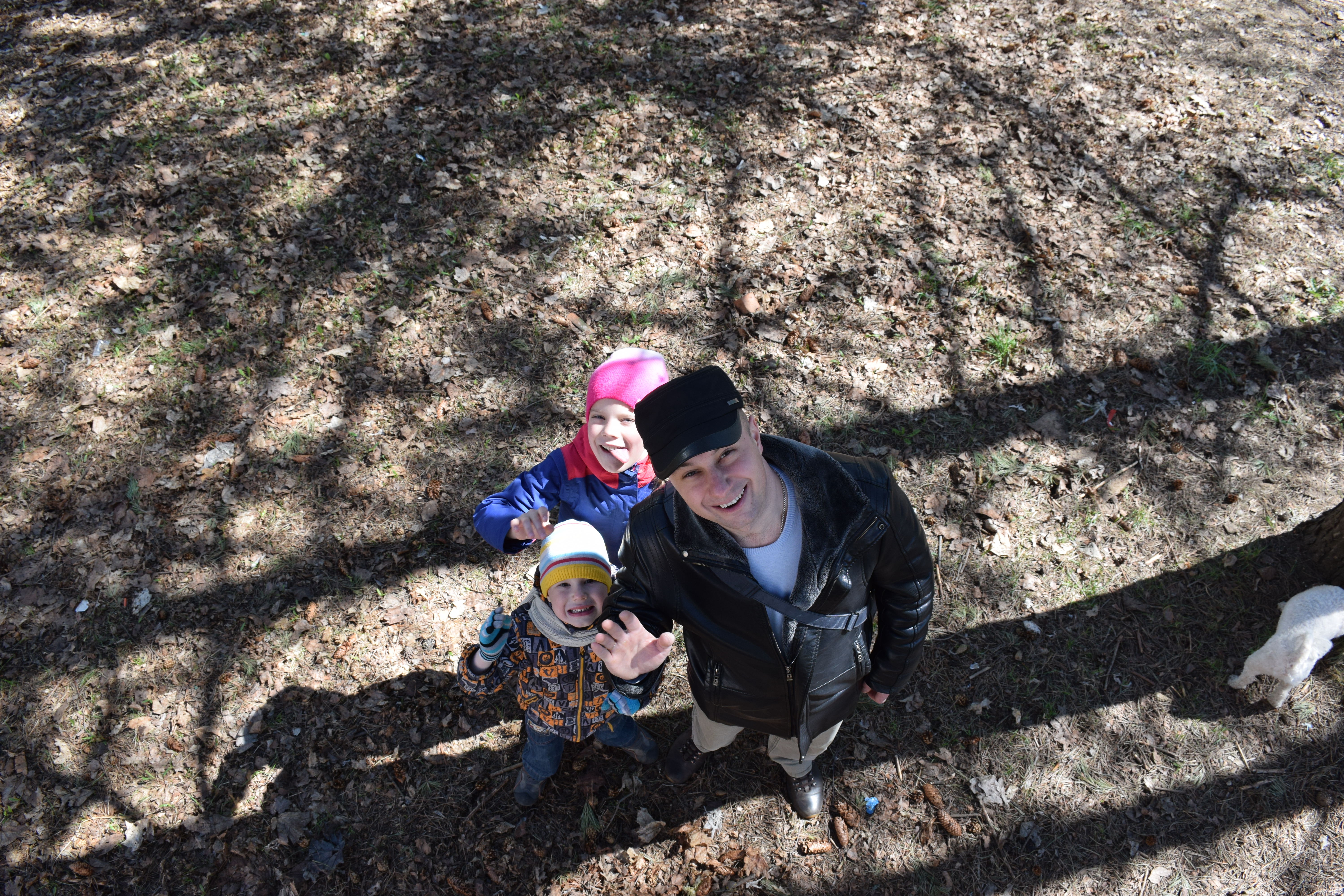 Нестандартная точка съёмки позволила преподнести сюжет более выгодно и интересно. Думаю, кому-то пришлось залезть на дерево) Автоматический режим справился на отлично. Диафрагма F7 позволила показать в резкость главных героев, а короткая выдержка 1/200 отлично заморозила момент. Снимок смотрится ярким, позитивным!