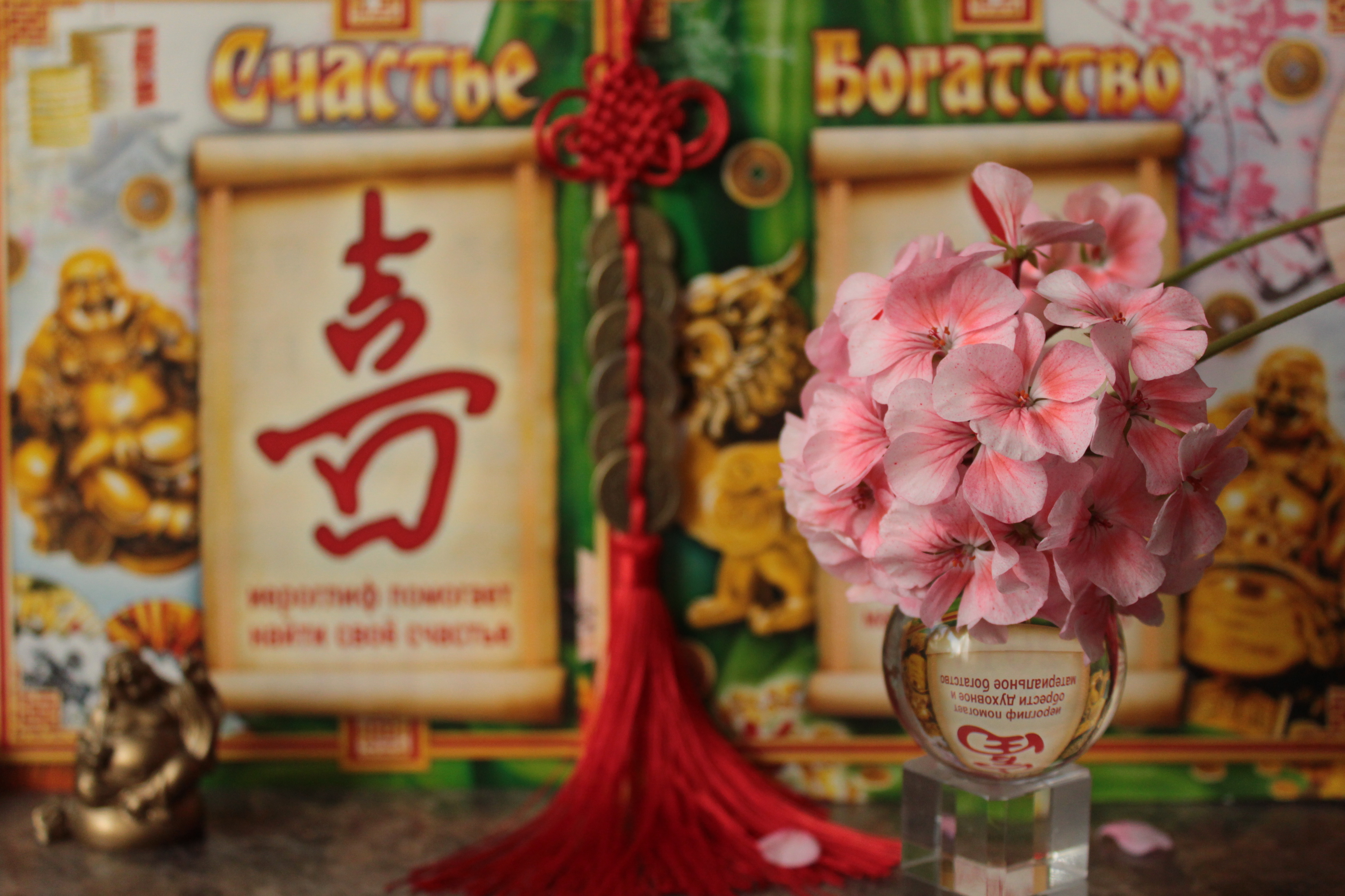 Давно делала эту работу - уже учась на этом курсе, и давно хочется ее показать вам. Делала специально для задания "натюрморт", но отправила другую. С этой композицией очень долго возилась, переставляя предметы то так, то иначе. Хотелось выделить соцветие герани на стеклянном шаре, и добивалась четкой читаемости текста в этом шаре и ровного изображения в нем. Ну а на заднем плане китайская символика. Получилось ли? В Китае преобладающим цветом праздника является красный, поэтому его так много. Не думаю, что он перетягивает на себя внимание, все-таки первым в глаза, я думаю, бросается именно розовое соцветие. Так ли это? И по художественному восприятию все ли правильно? )