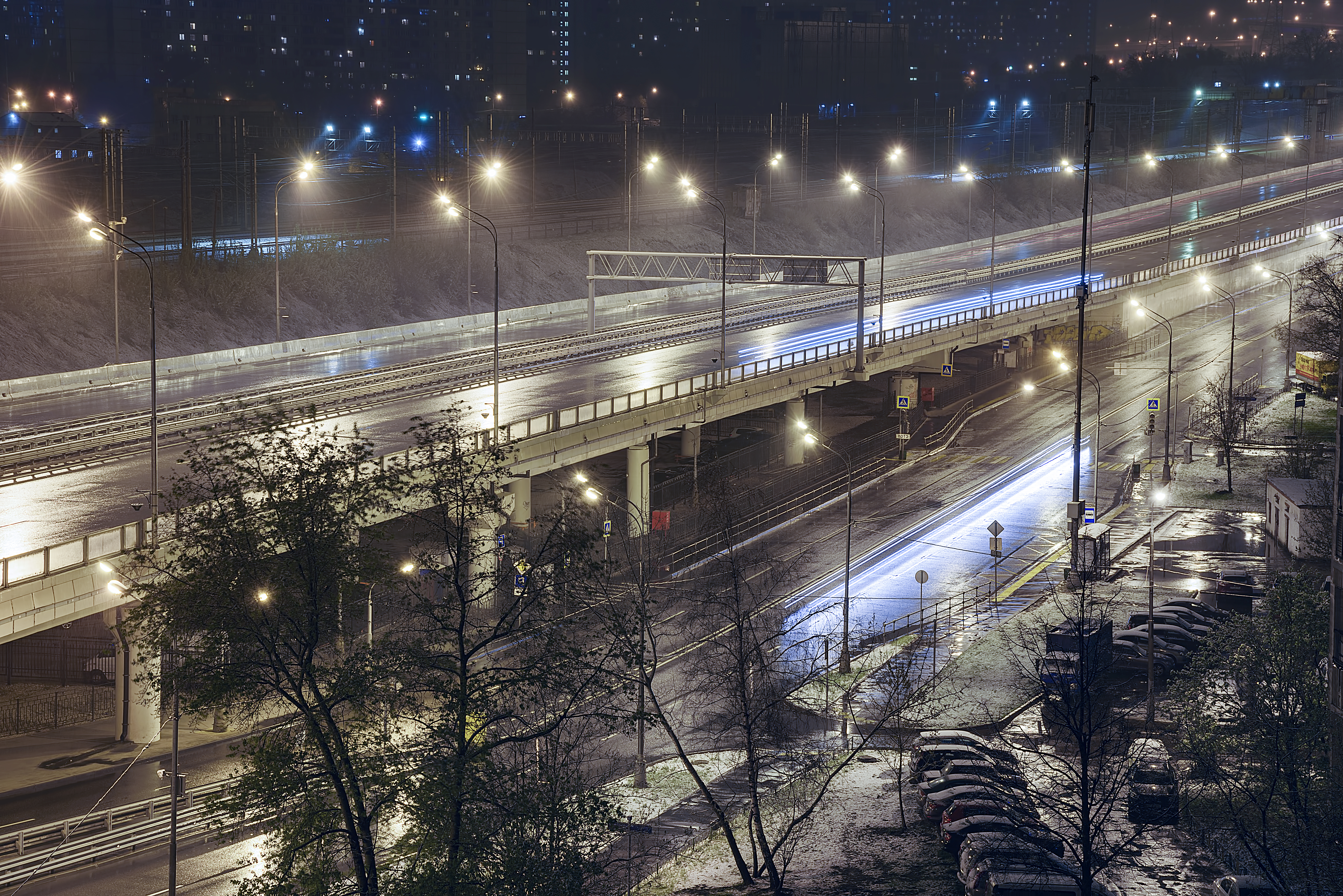Если есть возможность - в подобных случаях лучше выбирать дорогу без фонарного освещения, чтобы света не было слишком много и можно было свободнее оперировать параметрами экспозиции.