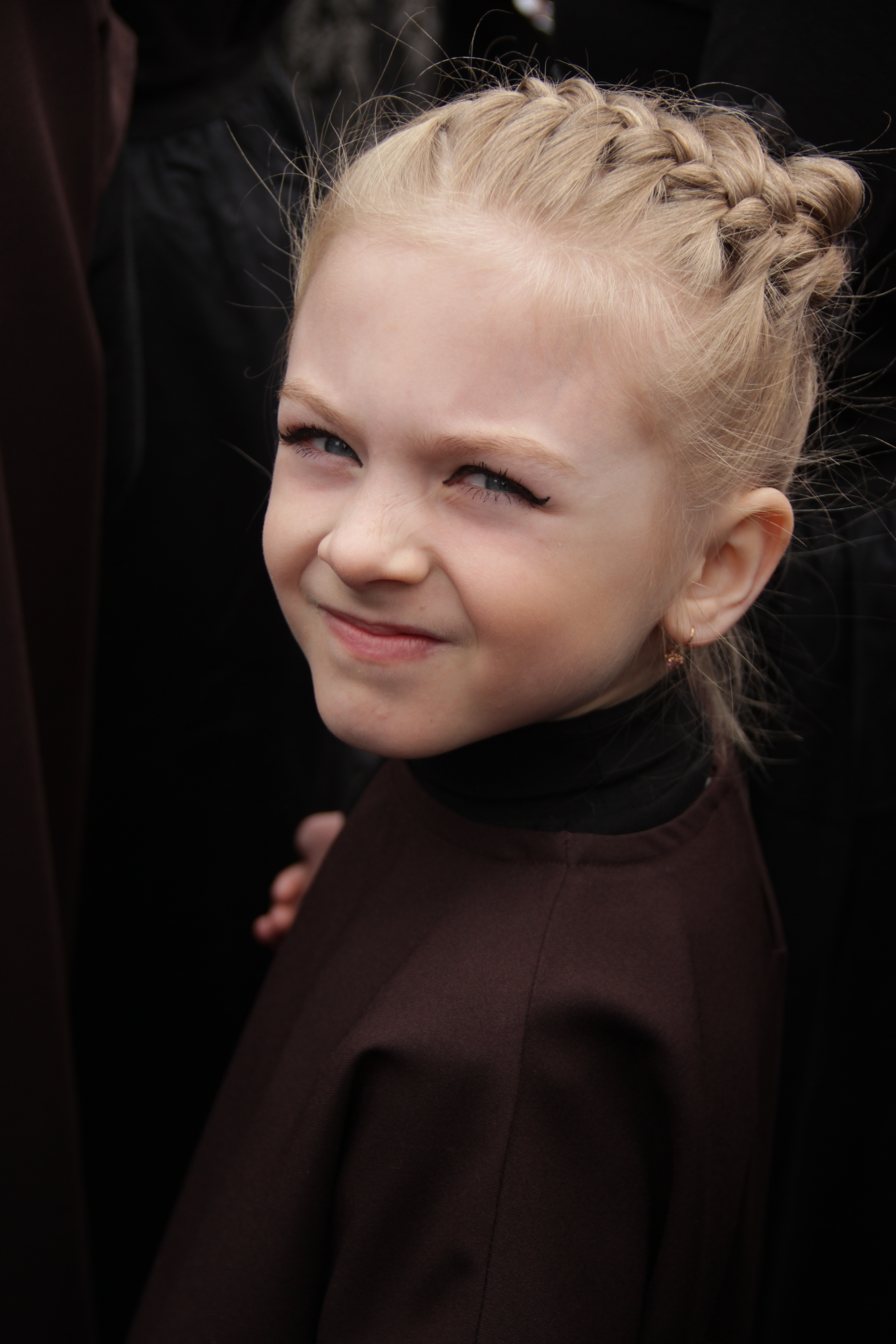 Маленькая глубина резкости и темный фон усиливают на девочку внимание.