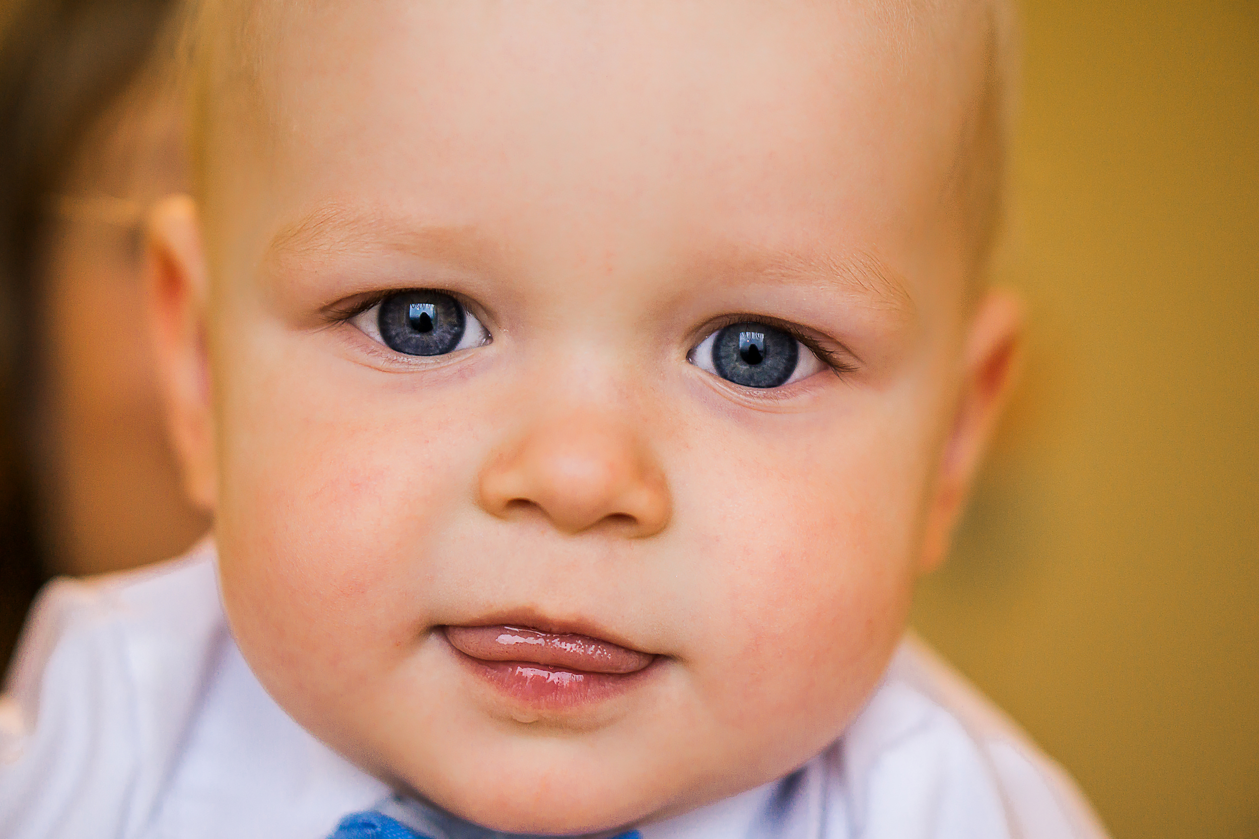 Небольшой перевес в желтоватые оттенки указывает на не совсем точную работу баланса белого. Скорее всего в кадре использовались источники света разные по цвету. Это может быть свет от окна и свет в помещении, что спровоцировало нарушение цветопередачи. Быть может рядом с малышом находился какой то яркий цветной объект, свет от которого отражался и повлиял на цветопередачу. Постарайтесь учитывать это при съемке , использовать свет одного цвета , тогда цветопередача получится более точной.