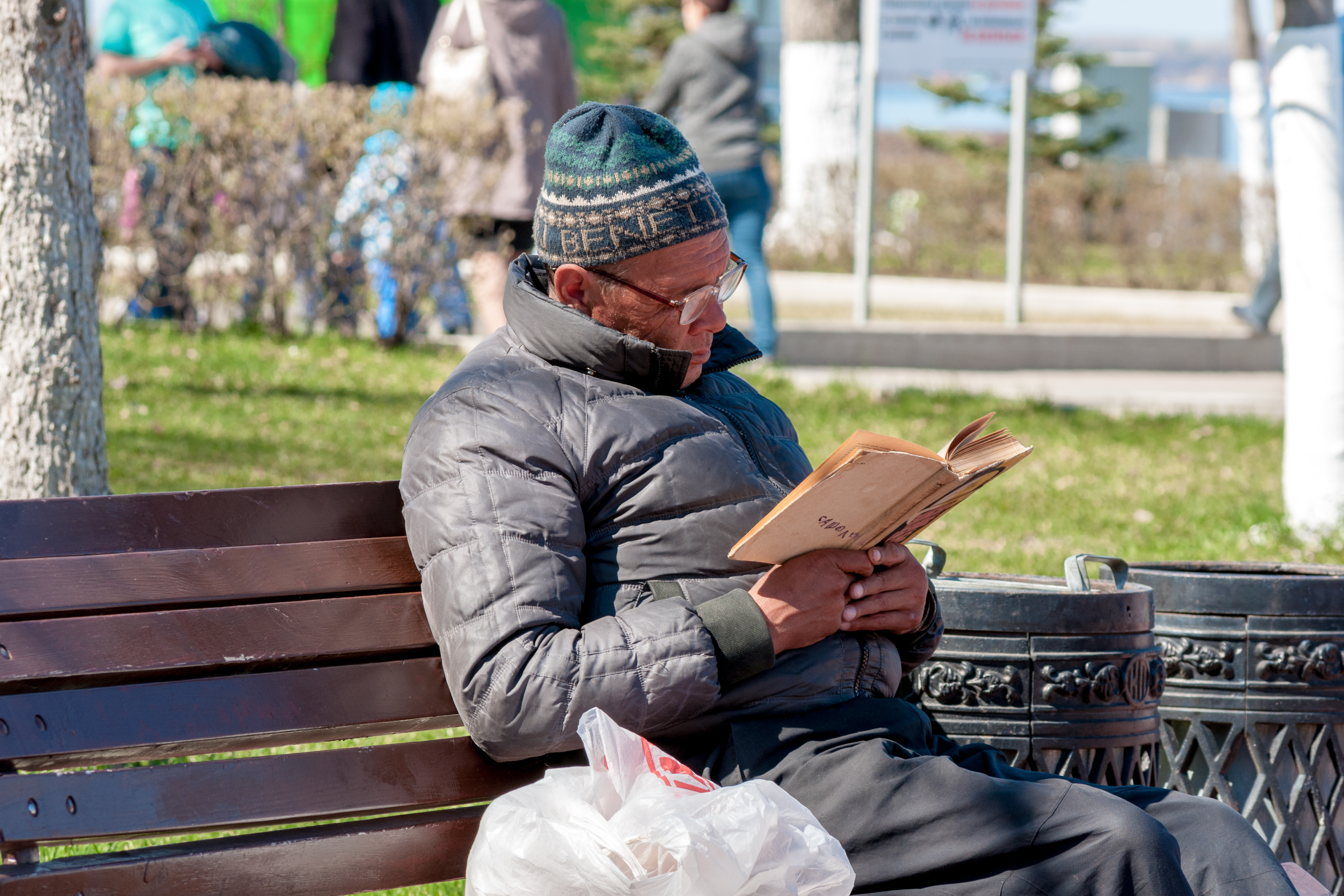 Добрый день! Гуляя по набережной, сделал случайный снимок читающего человека. Мне он показался достаточно необычным и выбивающимся из общей картины прогуливающихся людей.