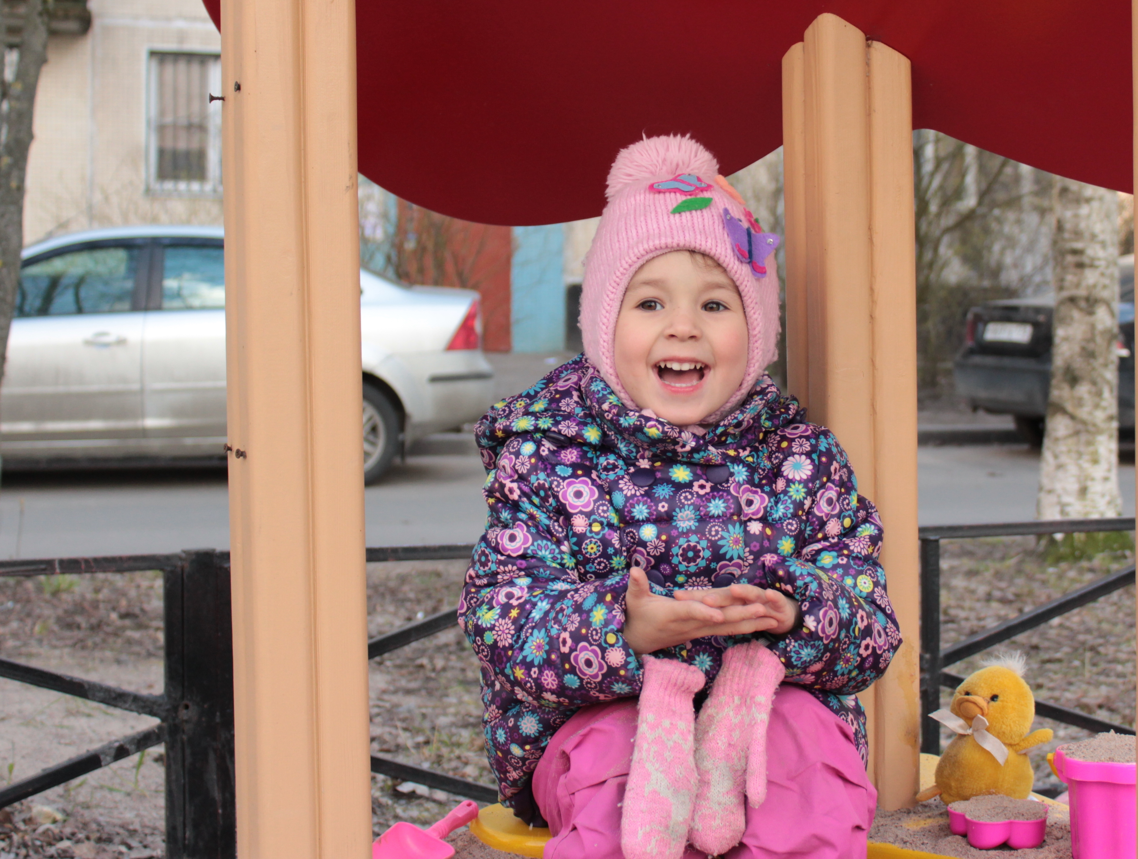 Выбрана достаточно короткая выдержка, движение девочки получилось зафиксировать .