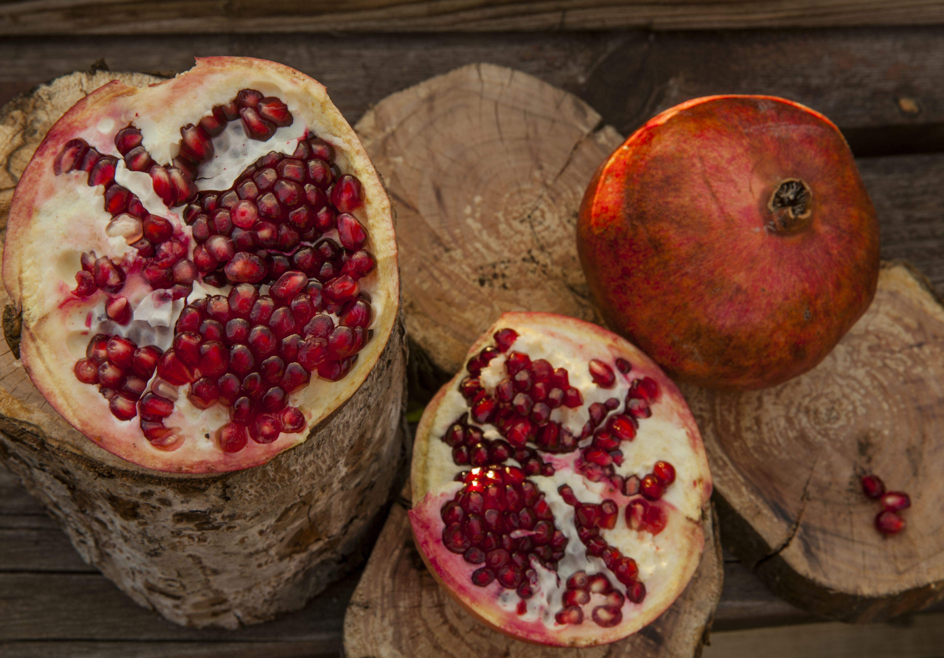 Интересный кадр у Вас получился. Вполне соответствует заданию. Гранат создаёт хороший цветовой акцент. Его округлая форма отлично сочетается с округлостью пеньков. Цвета смотрятся гармонично. Резкость точно навели.