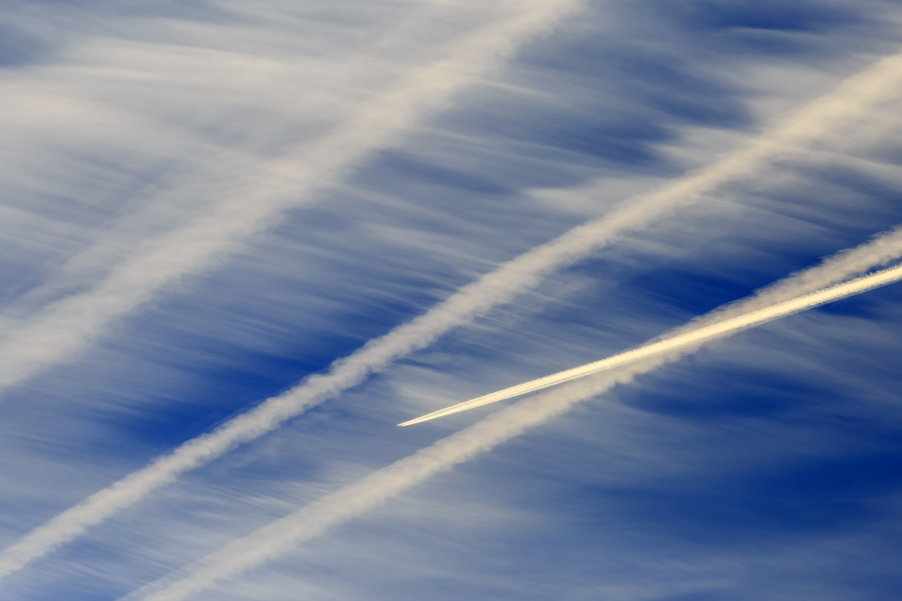 Короткая выдержка 1/2500 отлично "заморозила" момент, снимок получился резкий, не смазанный. А использование телевика при съёмке позволило показать следы от самолётов более близко.