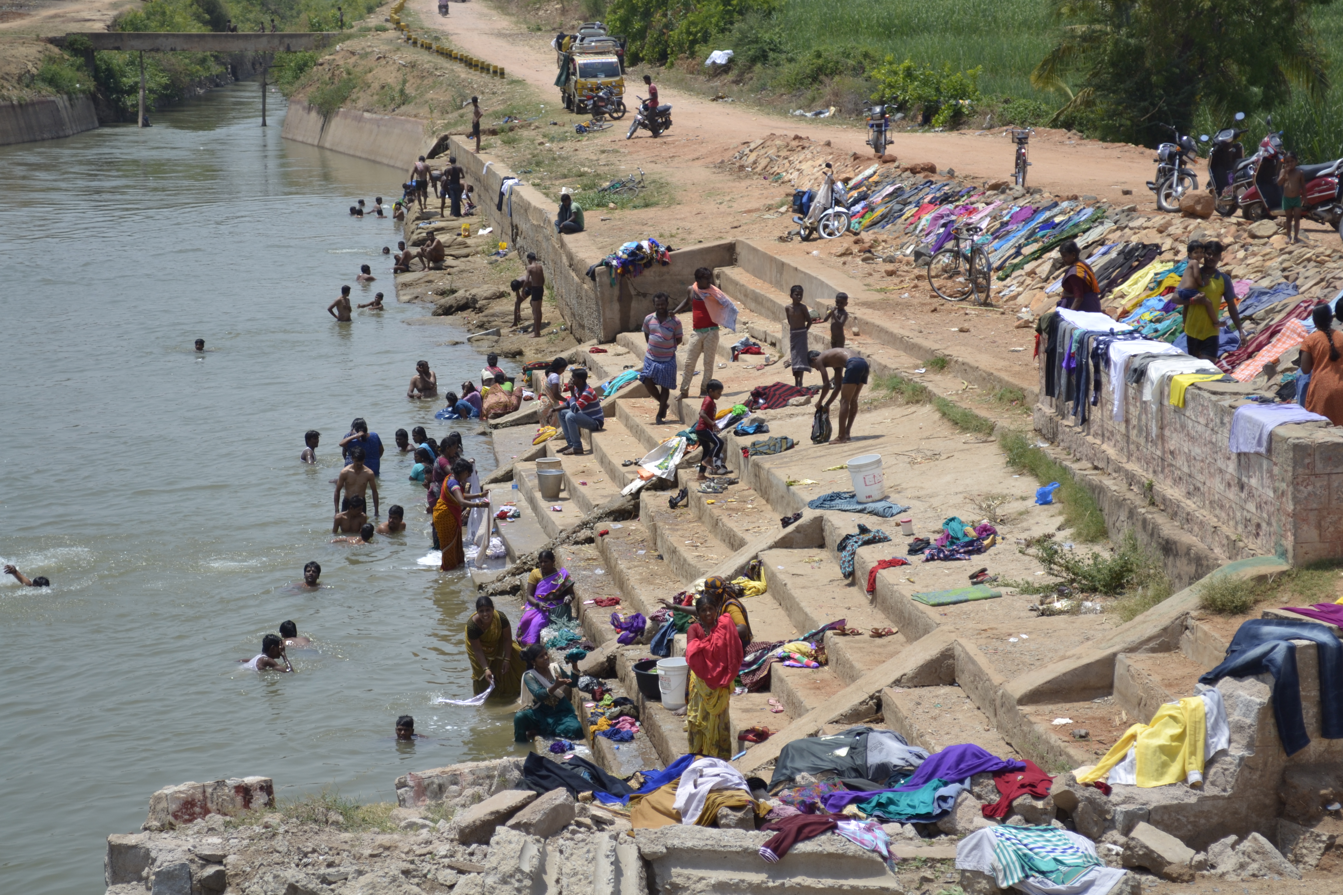 Интересно смотрится перспектива набережной, бетонные ступени оживляют фигуры людей и яркое белье. Это создает своеобразный ритм.