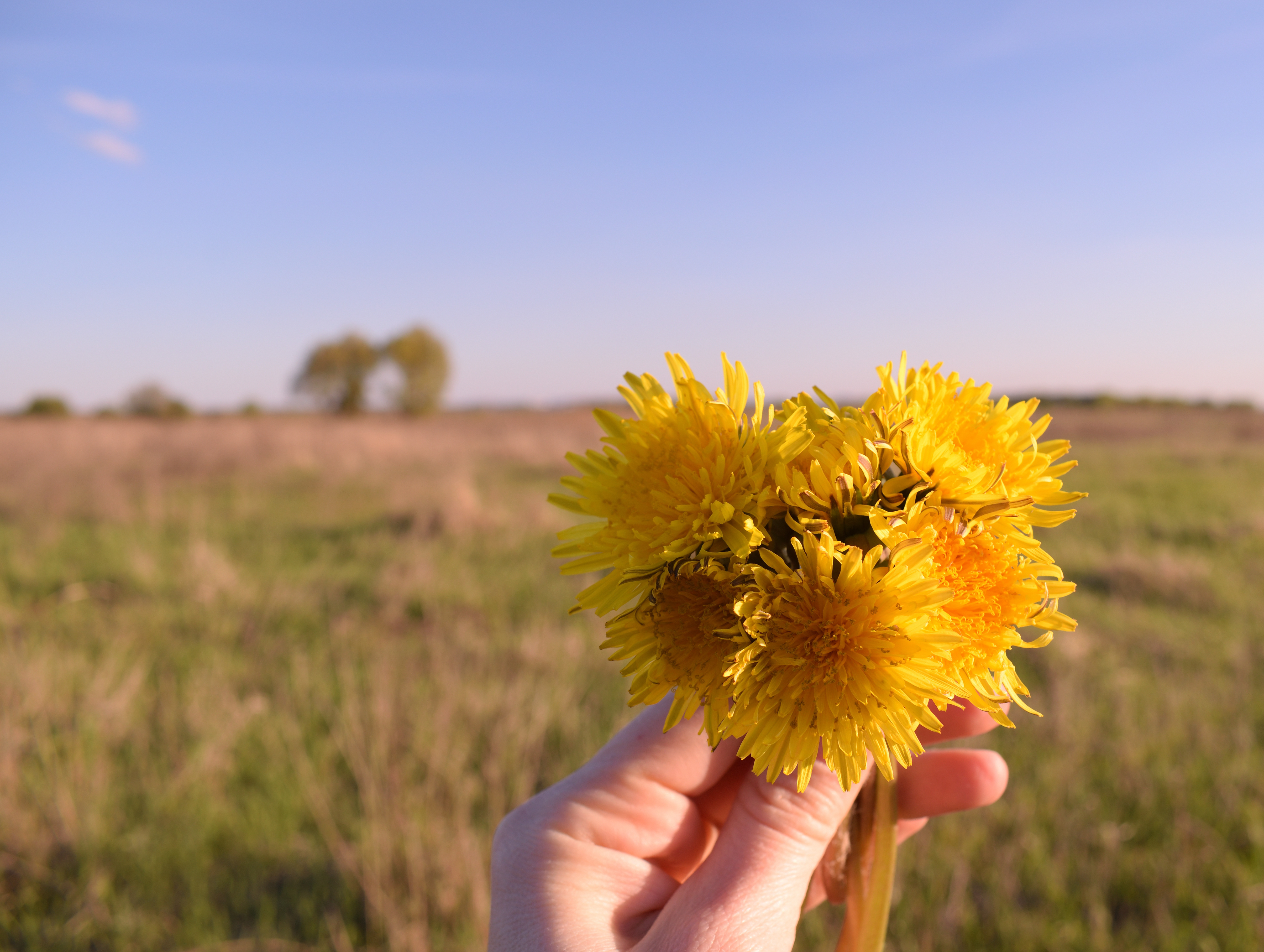 Я бы посоветовала чуть наклонить камеру, чтобы линия горизонта не проходила по краю букета. Будет выразительнее.
