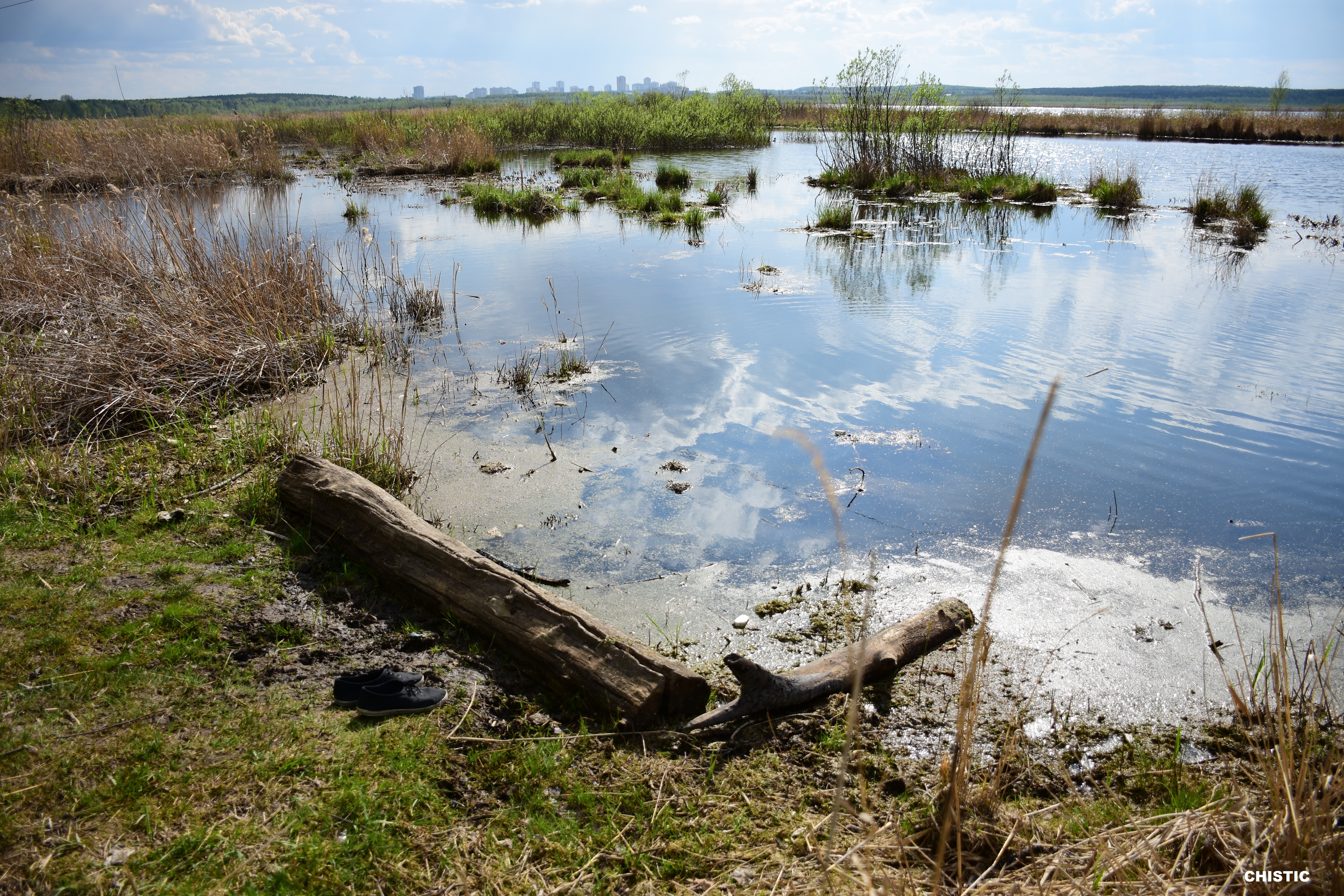 Из дома я взял свою старую обувь и отправился к берегу засыхающего озера - почти болота. В кадре я хотел изобразить сцену когда персонаж открывает дл себя купальный сезон. Делает это он в очень грязном месте. Но, по тому как он оставил обувь перед прыжком в воду, все это характерезует его как человека аккуратного. Тем самым я хотел показать контраст происходящего и вызвать у зрителя улыбку :) По кругам на воде можно предположить что с момента входа в воду прошло около минуты...