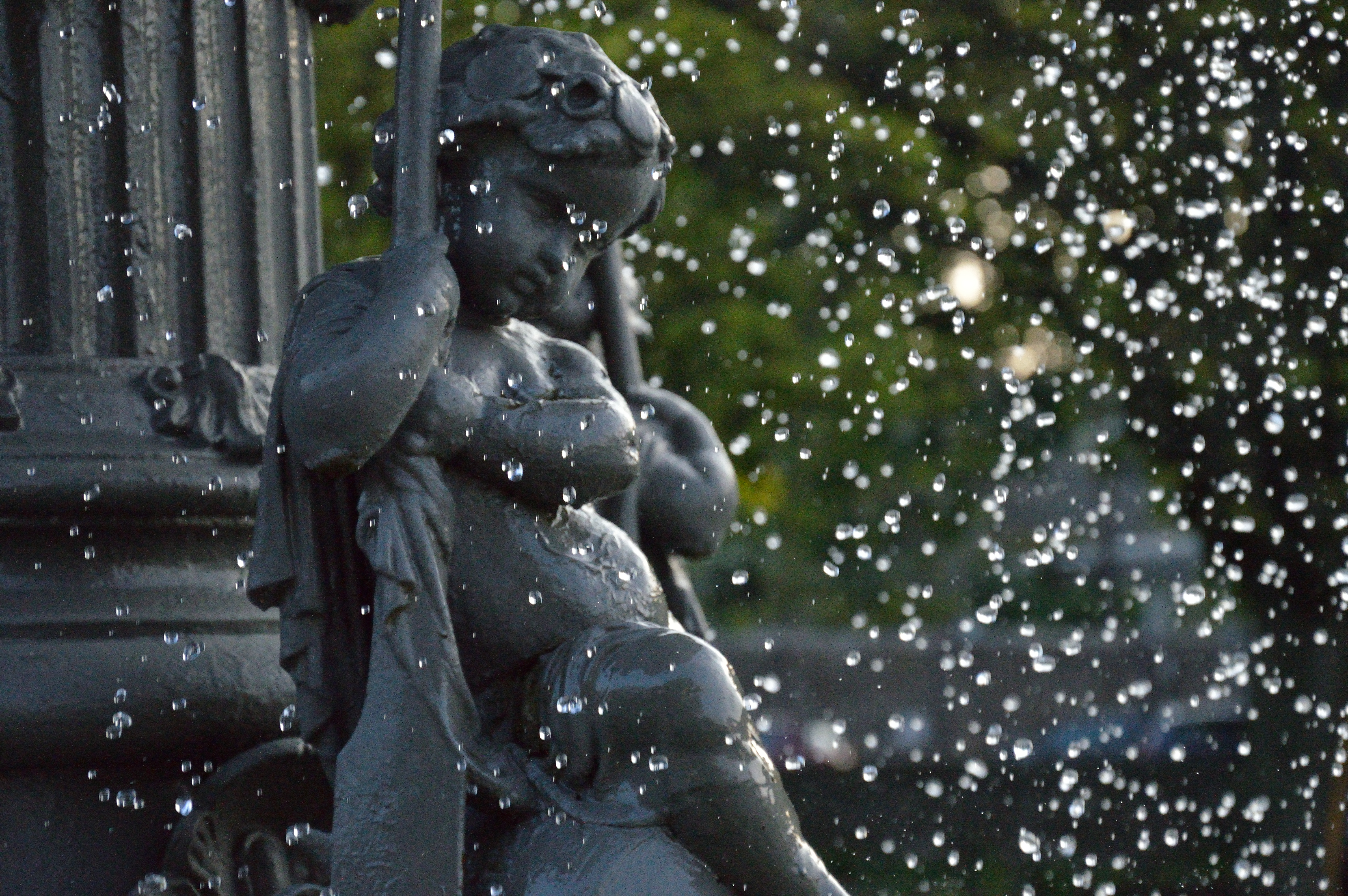 Решил остановить воду в фонтане. Дело было вечером, поэтому поднял ISO до 1600 и максимально открыл диафграгму.