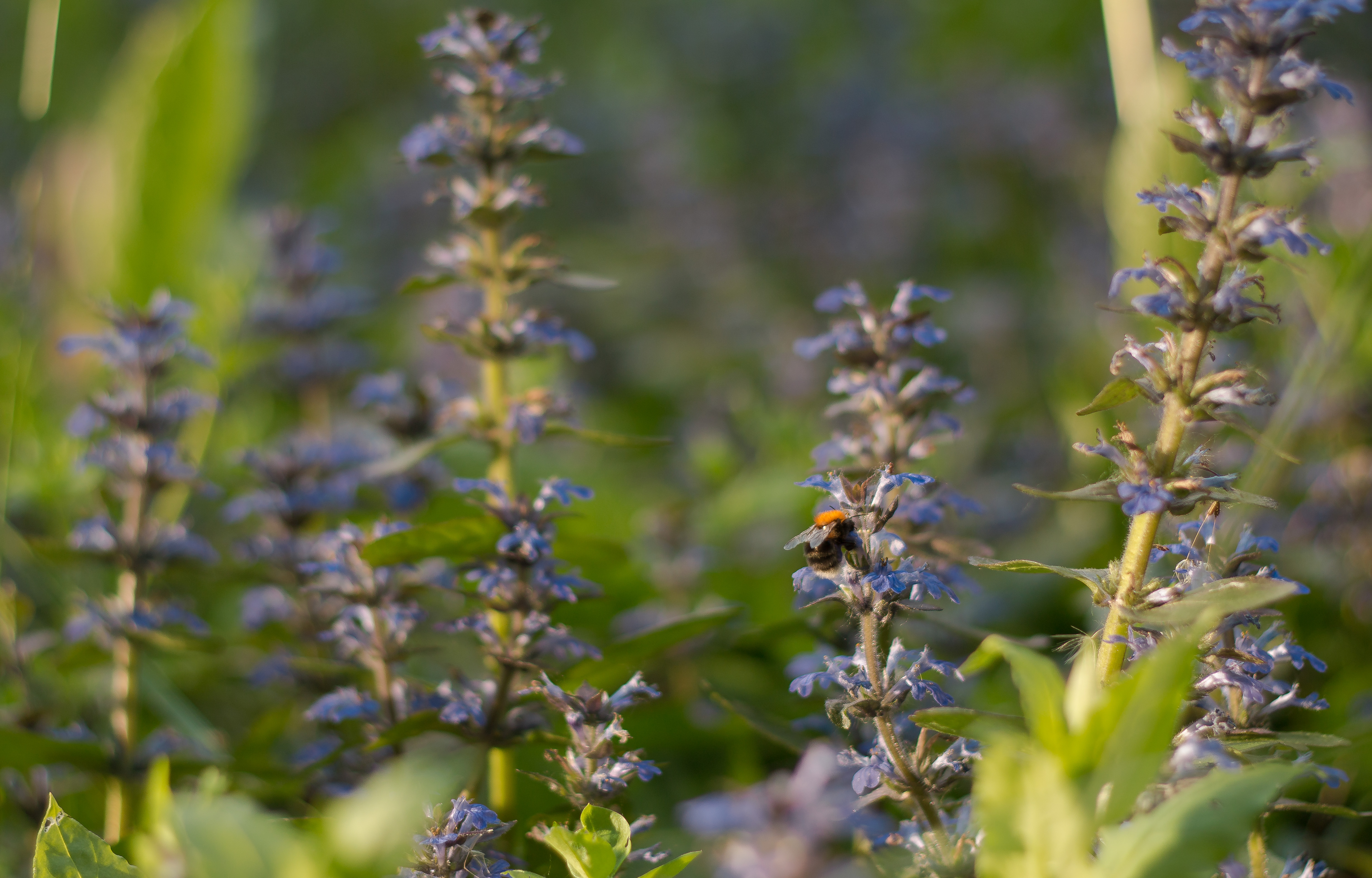Здравствуйте. Снимок я скадрировала, мне кажется, так оно смотрится целостно. Повысила резкость, для того чтобы акцентировать внимание на шмеле и была видна фактура его тельца. Немного поработала с полутенями и освещенными участками, для более контрастного и выразительного снимка. По коррекции цвета немного усилила цвета цветов.