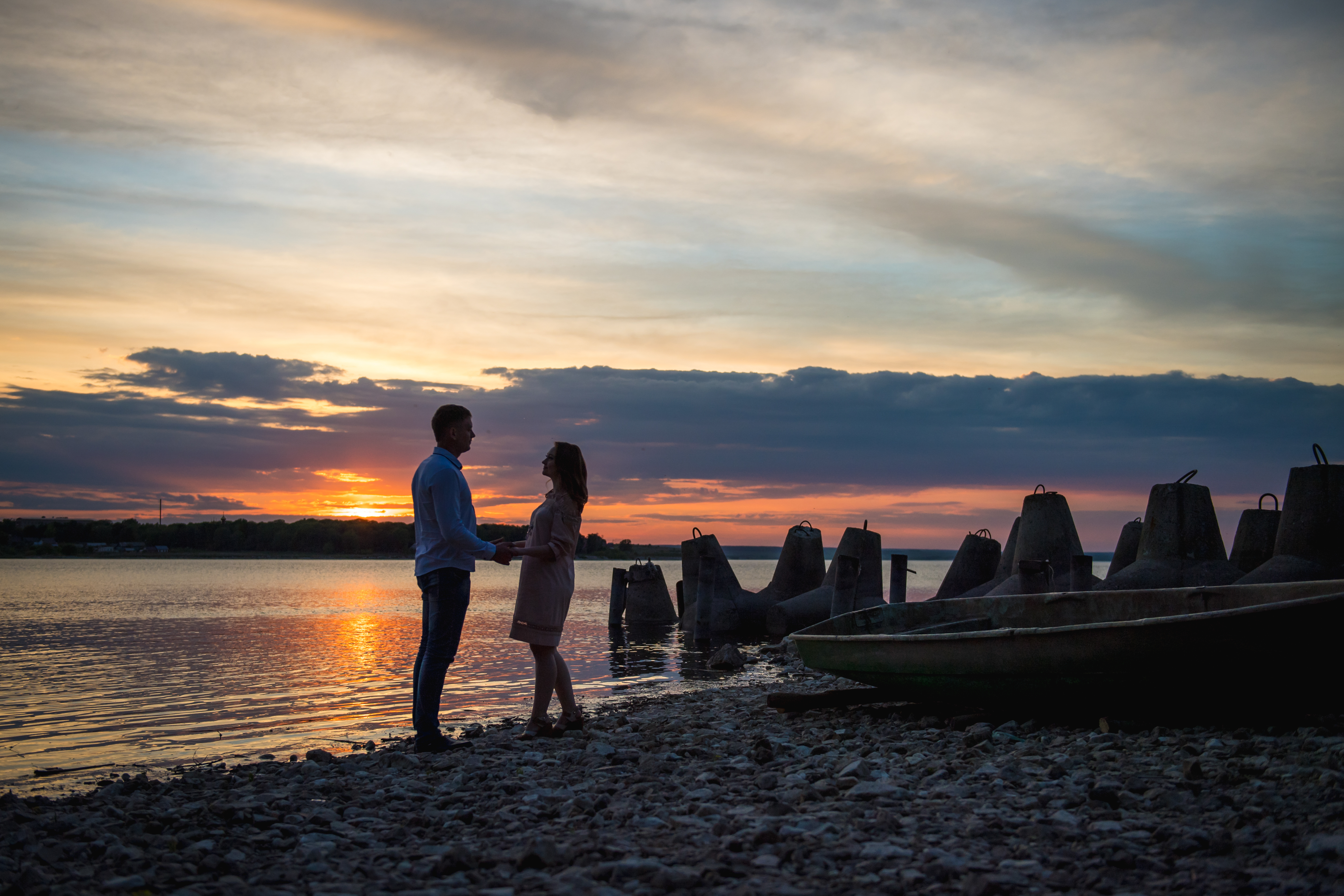 Интересный кадр у Вас получился. Здорово скомпоновали, сместив пару от центра. Лодка и бетонные конструкции отлично дополняют второй план.