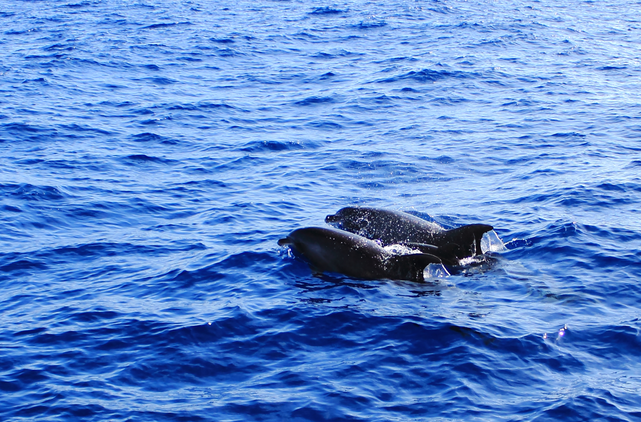 Дельфины получились резкими, выдержка была достаточно короткой.