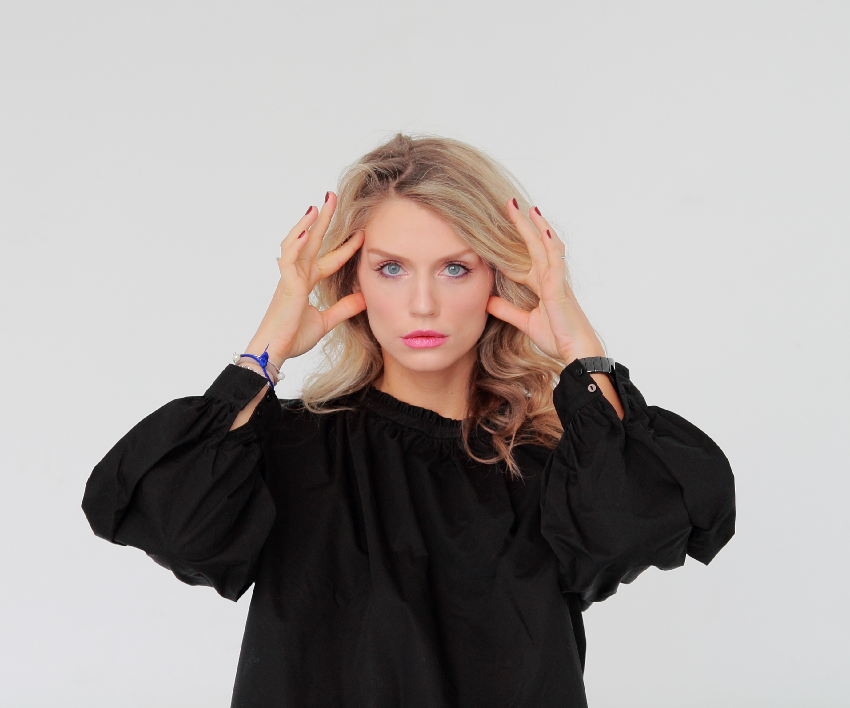 Камеру сфокусировали точно на лицо модели. Взгляд живой , выразительный.