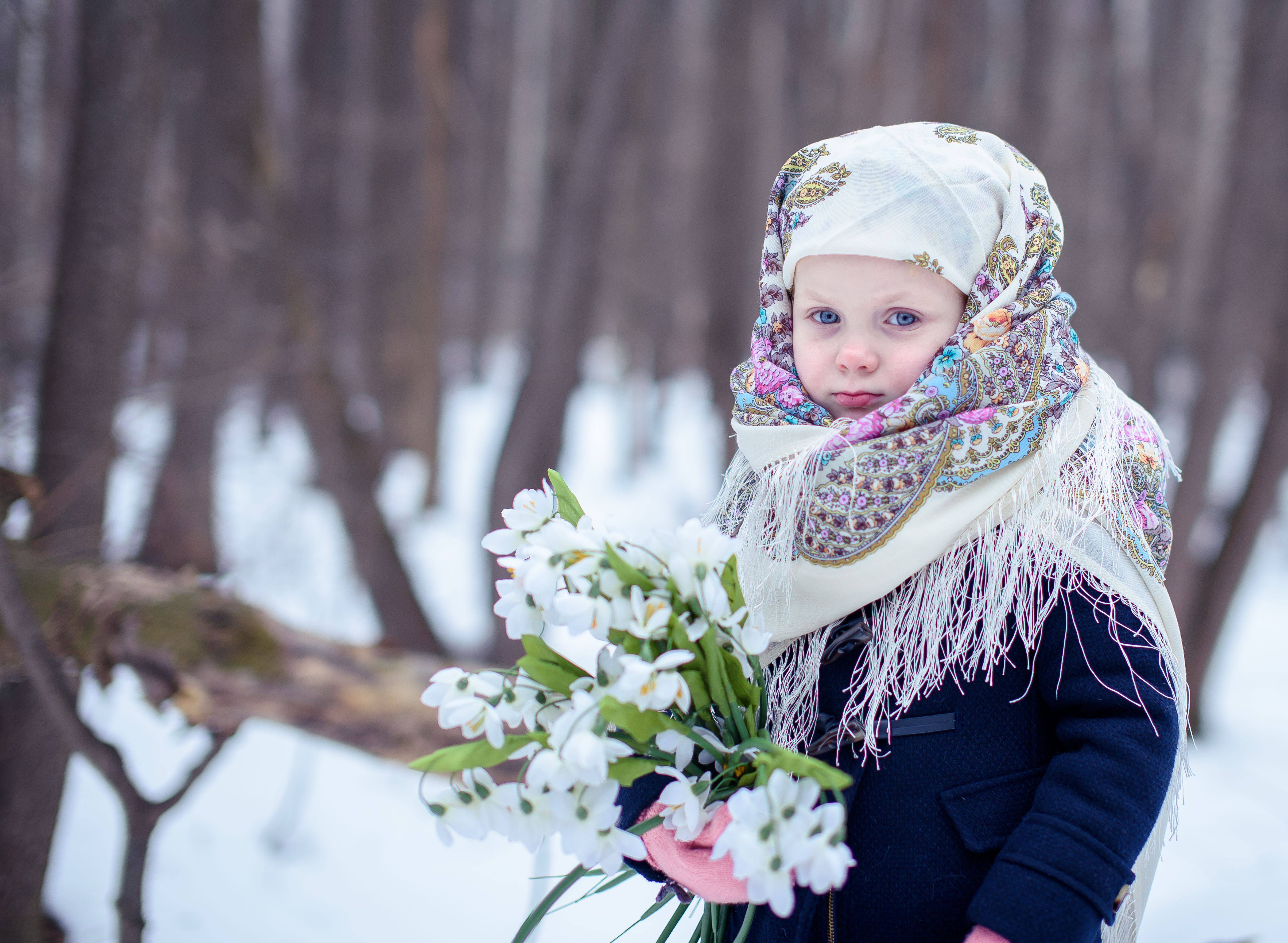 Еще раз здравствуйте) Наверно помните сказку 12 месяцев? Так вот эта девочка, которую злая мачеха отправила за подснежниками на фото)