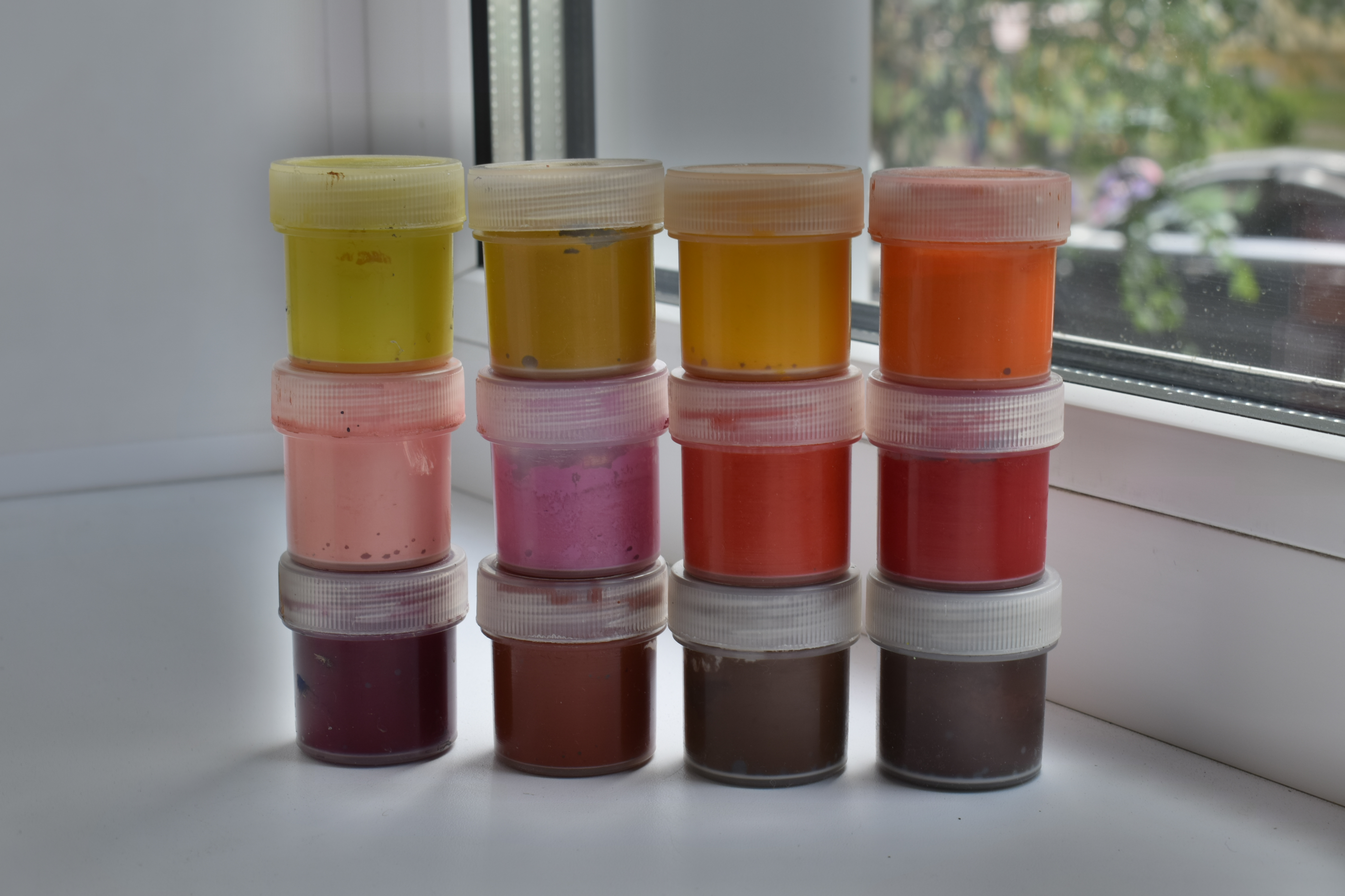 Nikon D5300 18.0-55.0mm f/3.5-5.6 Режим M iso100 f/14 1/80s 0.67eV 40mm снимок сделан в пасмурный день на окне, старалась передать достоверное цвет красок в баночках