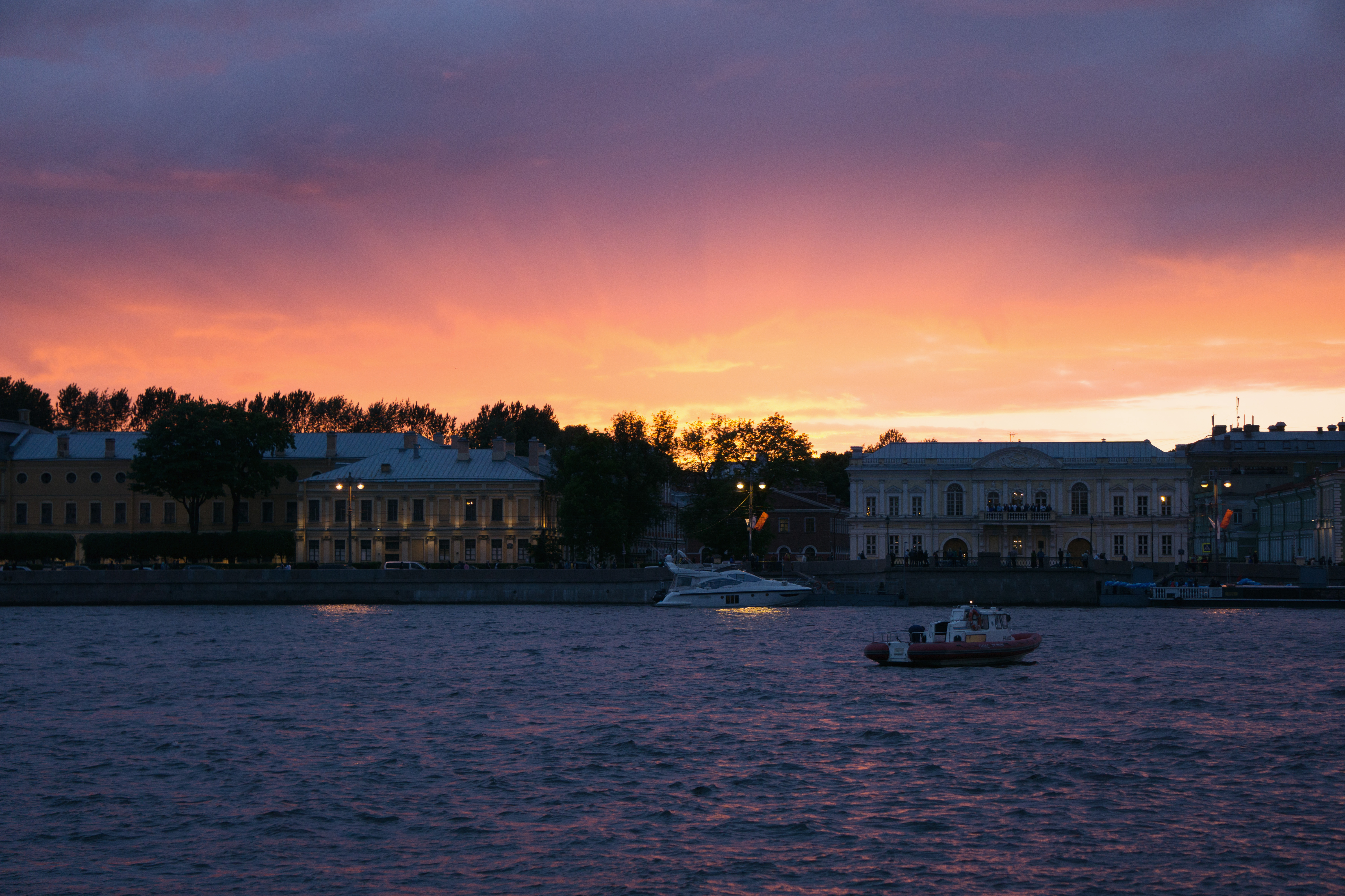 Для фиксации движения катера применили верно режим съемки , установили достаточно короткую выдержку. Движение катера удалось зафиксировать , он здорово оживляет снимок .