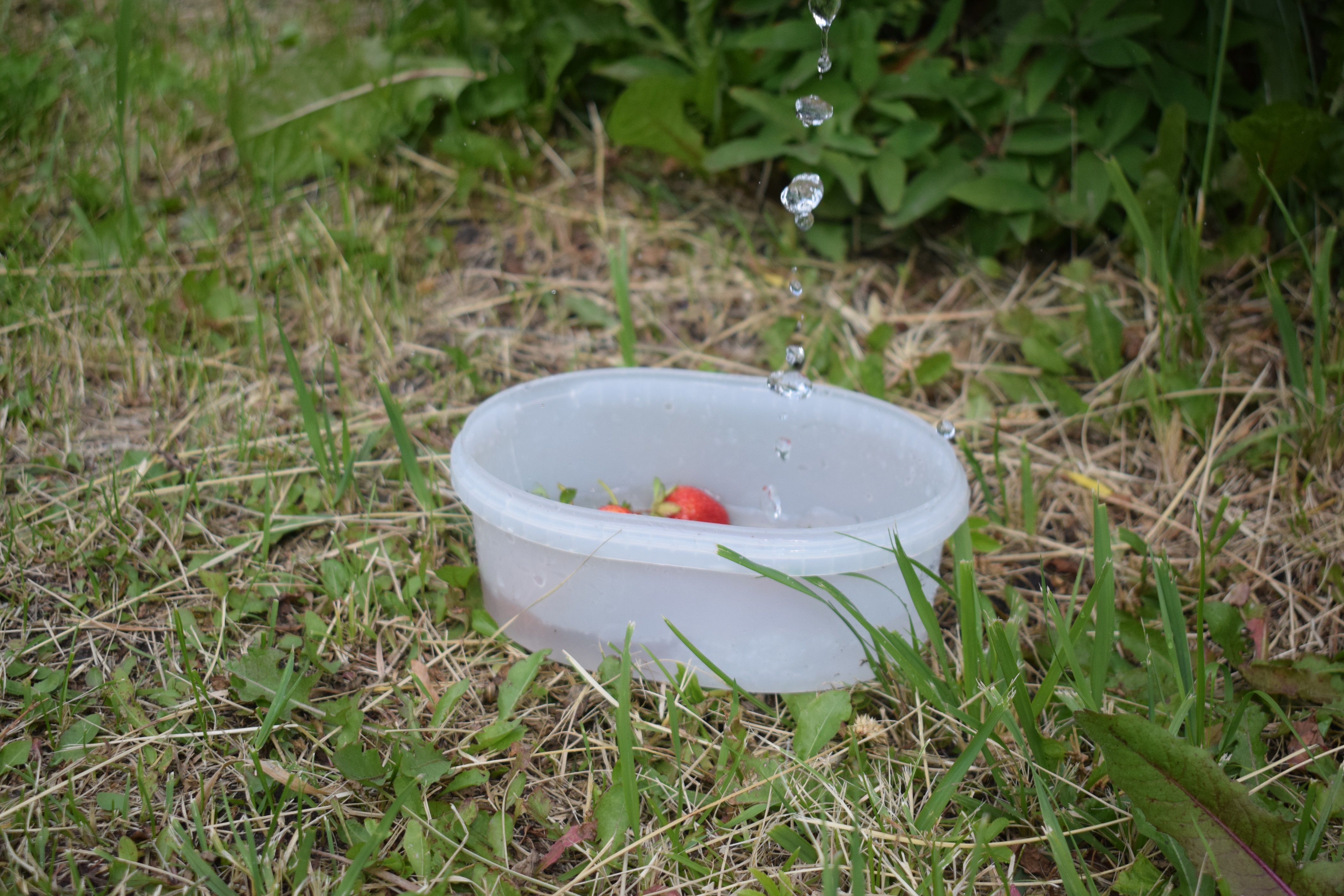 К сожалению камера сфокусирована на передний край мисочки , так как диафрагма приоткрыта глубина резкости маленькая, капли не попали в поле резкости.