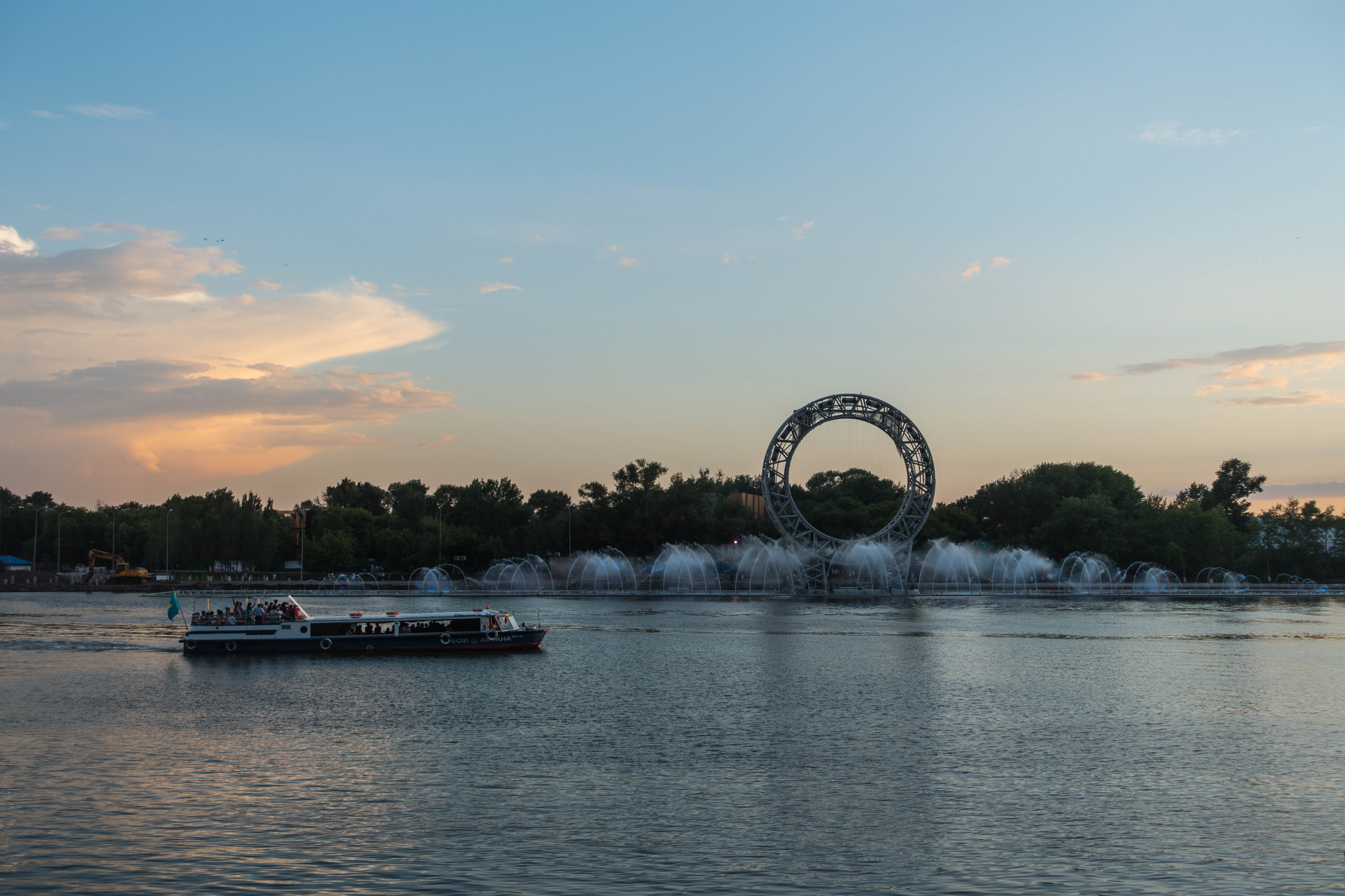 Правильно сделали, что сместили горизонт ниже середины кадра. Силуэт аттракциона и фонтаны отлично дополняют фото.