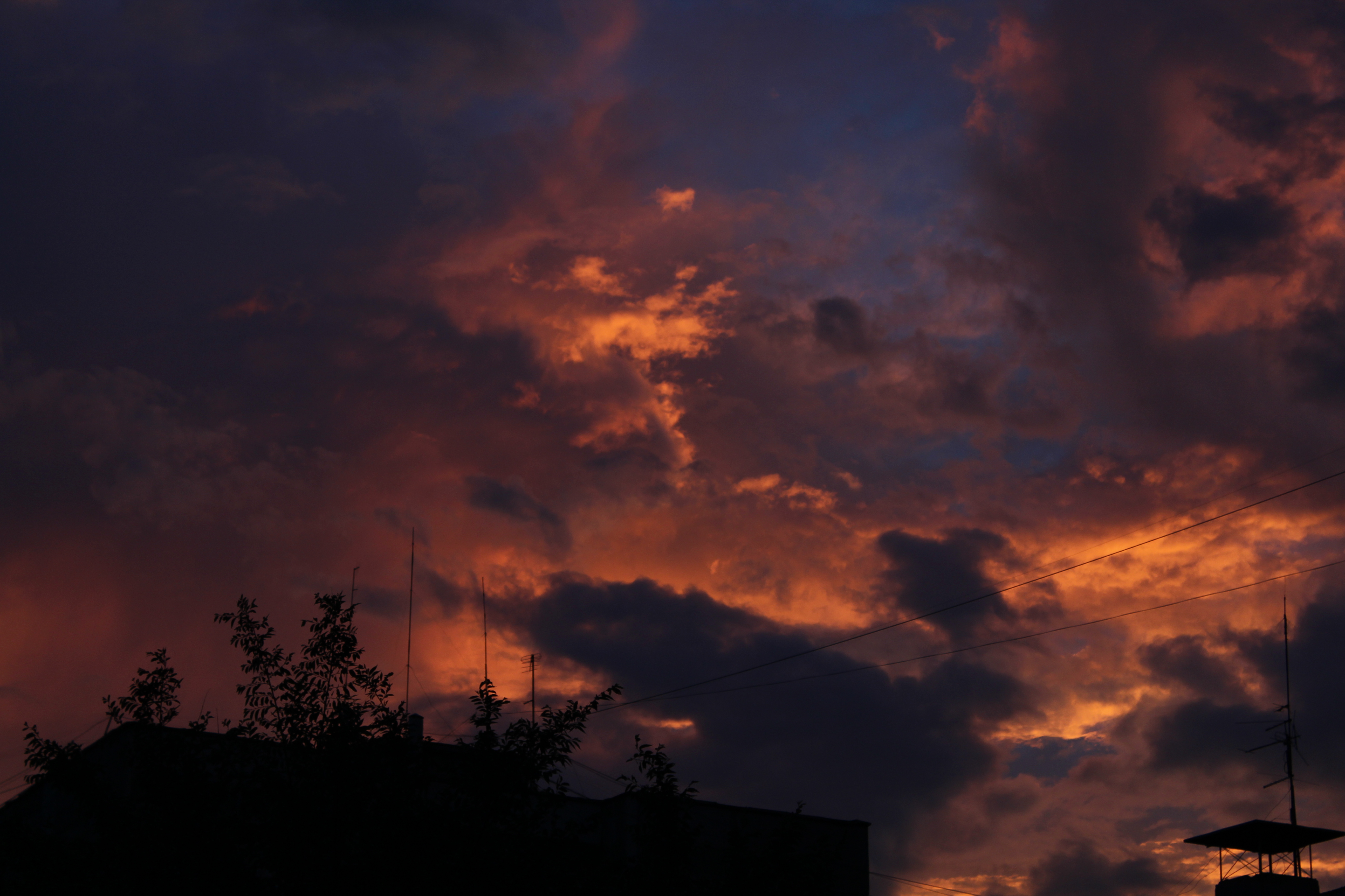 Очень эффектно передали контраст красок закатного неба.