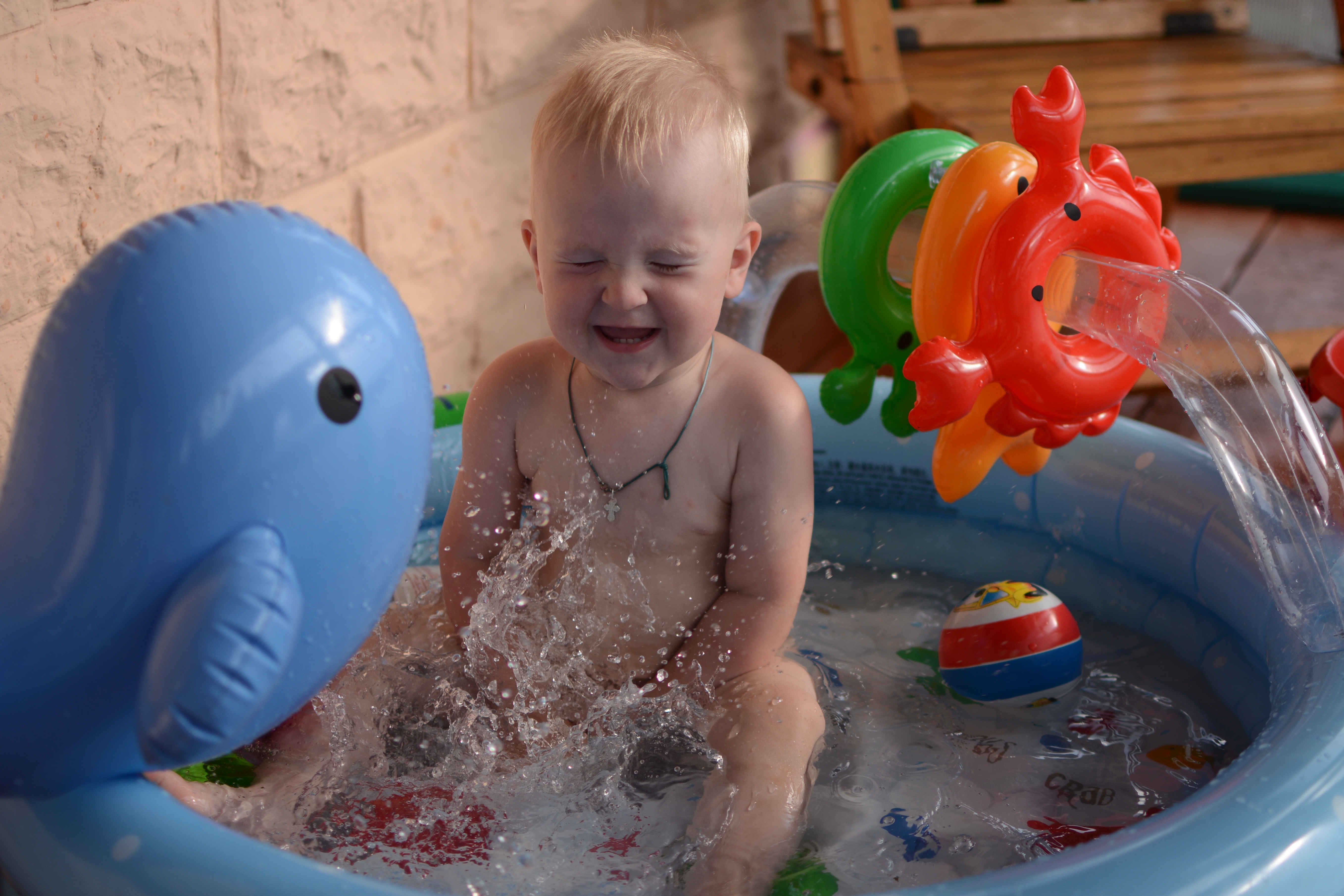 Отличный кадр у Вас получился. Здорово переданы эмоции. Благодаря короткой выдержке удалось чётко зафиксировать брызги. С резкостью всё в порядке.
