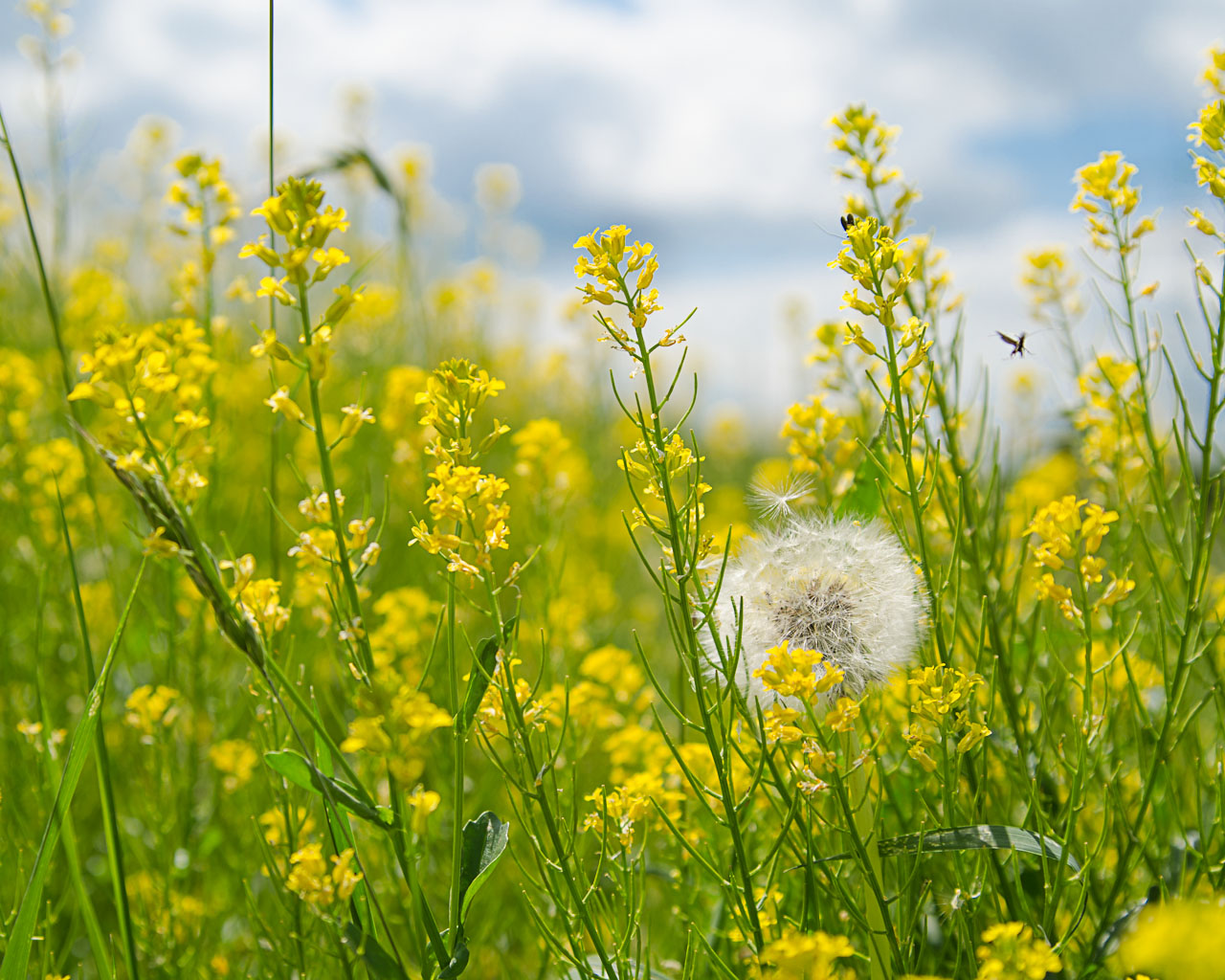 Добрый вечер. Выбрала этот кадр и назвала его: " Чужой среди своих". Главным обьектом является одуванчик , который вырос один среди этих цветов. Цвета преобладают светлые и яркие, кадр не контрастный. Чувствуется динамика: мошка в полете, оторвавшийся зонтик одуванчика, наклон травы. Навевает прекрасное солнечное летнее настроение!